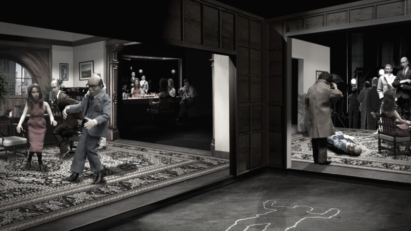 Een echt moordmysterie, maar zonder echte mensen. Knap van sfeer en belichting, knap van choreografie en knap zonder woorden. Alles knap.