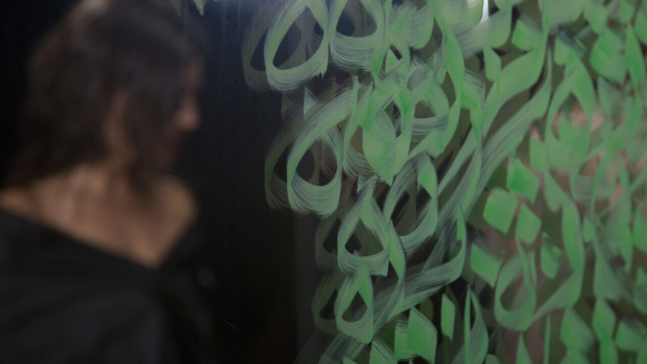 Een delicaat spel. Een vrouw achter glas – als een model voor een schilder. Een suggestie van naakt. De schilder schildert niet. Hij schrijft – hij kalligrafeert. Mooi, snel en met een moderne marker. Op het glas verschijnt een gedicht van de beroemde dichter Omar Khayyam. De beroemdste van de beroemde Perzische dichters. Naarmate het gedicht vordert, neemt het als een sluier het zicht op de vrouw weg.