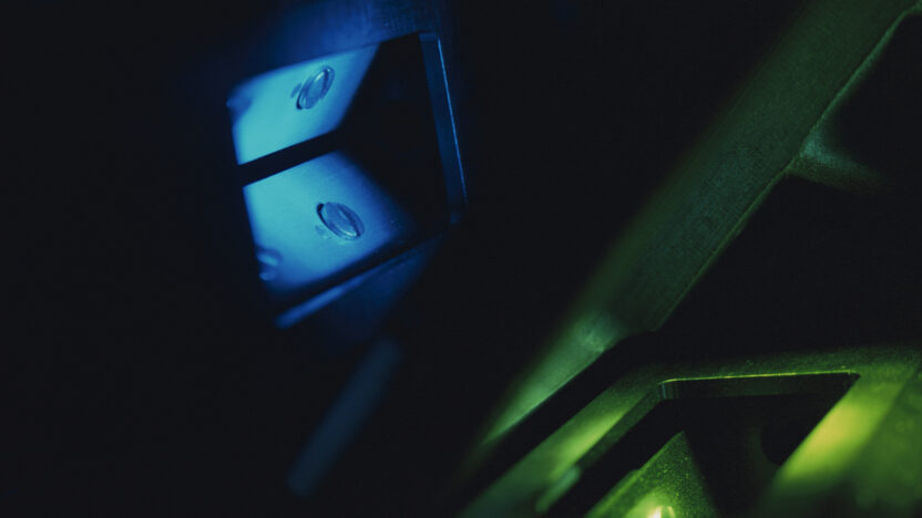 Digitale beelden worden opnieuw gefotografeerd en beeld voor beeld geanimeerd, op zoek naar nieuwe vormen van verval. Thema: de zwaartekracht. -