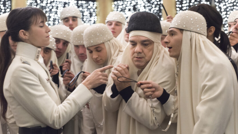 In de Democratische Volksrepubliek Bubunne zijn de vrouwen aan de macht. Zij besturen het land en handhaven de orde, terwijl de mannen – gehuld in bedekkende gewaden – het huishouden runnen. Erg democratisch gaat het er niet aan toe; de ‘Generale’ regeert met harde hand en laat tegenstanders publiekelijk ophangen. In dit vreemde landje, waar paarden worden vereerd en de nationale keuken zich beperkt tot slijmerige pap, maakt de 20-jarige Jacky zich op voor het Grote Bal, waarbij de dochter van de Generale (Charlotte Gainsbourg) een man zal kiezen. Jacky hoopt vurig dat hij uitverkoren wordt, maar hij is niet de enige. Striptekenaar Riad Sattouf, die als regisseur debuteerde met het bekroonde Les beaux gosses (2009), steekt in zijn tweede speelfilm de draak met gangbare opvattingen over mannen en vrouwen. Het satirische Jacky au royaume des filles is niet alleen geestig, maar ook vaak scherp in zijn hardnekkige omkering van zaken. Daarnaast is de film ook een romantisch sprookje, vol zwarte humor en met een bijzonder verrassend slot.