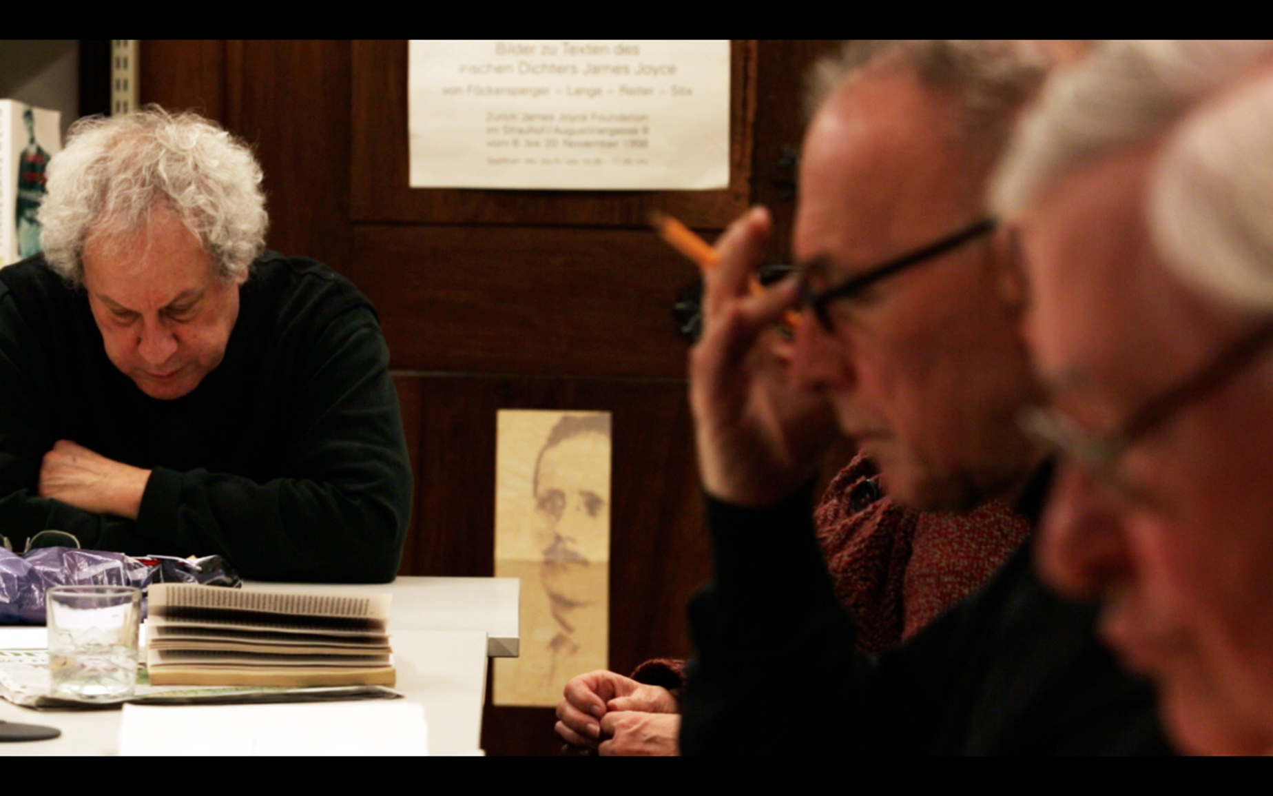 Een groep mensen leest al dertig jaar samen een boek, telkens opnieuw. De tekst lijkt onuitputtelijk, de interpretaties eindeloos, het onvoltooide lezen enerverend. De wereld lijkt buiten deze leeskamer op te houden te bestaan, of misschien is dat wel de reden dat hij bestaat.