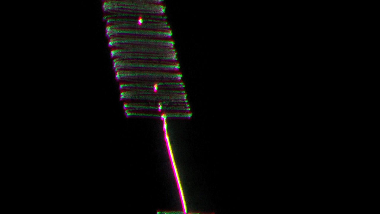 Een film over rudimentaire zaken: de puurheid van licht en elektronische signalen. Deze worden met ‘laser-scribing’ gebombardeerd op de vier meter hoge, door de Duitsers aangelegde anti-tankwal in de duinen bij Amsterdam. Verticaliteit is een obstructie, een afschrikking die tot vertraging leidt. Dat moet je gewoon aanvaarden.