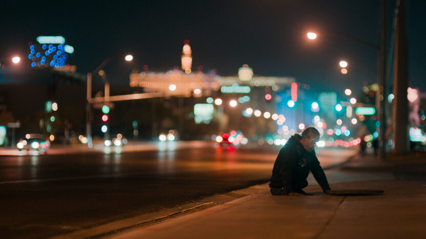 Sommige personages wonen in een ondergelopen tunnel, anderen bereiden zich voor op een verhuizing naar Mars en weer anderen leiden een eenzaam bestaan in een uitgestrekte woestijn. Het klinkt misschien als de ultieme, post-apocalyptische sciencefictionfilm – maar Above and Below is geen fictie. Rick en Cindy zijn een innig stel. Ze zijn dakloos en wonen al heel lang in een tunnel aan de rand van Las Vegas. Dave overleeft in zijn eentje in een hutje in de woestijn van Californië. Hij praat voortdurend over God en stuurt Hem berichten met zand in lege flessen. April heeft een huis, maar vanwege de algehele crisis van de mensheid overweegt ze naar Mars te verkassen. Ze hult zich in een astronautenpak en struint door het rotsachtige landschap van Utah alsof het de rode planeet is. Nicolas Steiner raast in hoog tempo door dit onbekende Amerika en volgt zijn curieuze hoofdpersonen met zoveel empathie en hartstocht dat je ze onmogelijk buitenstaanders kunt noemen. Ze leven, hebben lief en dromen dat het een lust is, zoals alleen echte romantici dat kunnen. Het zijn allemaal onzichtbare superhelden van de wereld van nu, die een verlaten indruk maakt, vervuld van eenzaamheid, verlangen en een wanhopige drang naar vrijheid. Om de sublieme aard daarvan bloot te leggen, moet je een echte dichter zijn. Steiner bewijst dat hij dat is door een groots en toch intiem, maar eveneens uiterst filmisch beeld te schetsen van alledaagse overlevingsdrift.