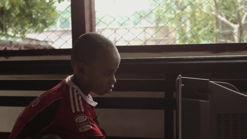 Zo kan alleen een jongetje uit Papoea aan een klimrek hangen. Hij glundert, want zijn grote broer Hans heeft gebeld. Elegante glimp uit het echte… -
