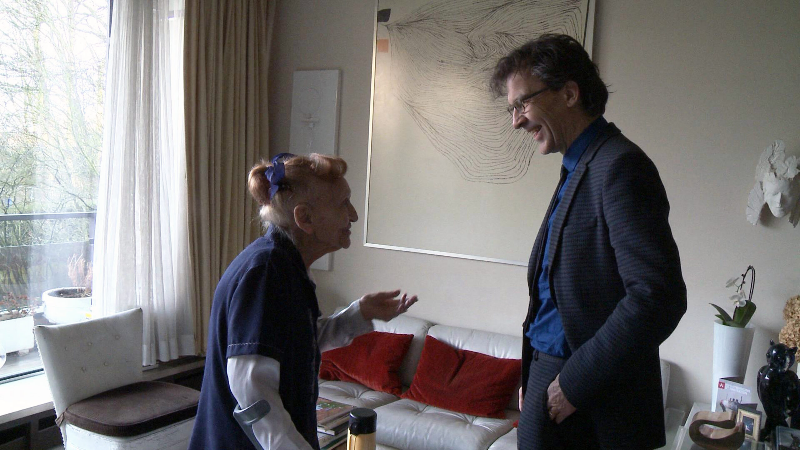 ‘Het gaat altijd om zien, om kijken,’ zegt Sjarel Ex ergens halverwege de film. Dat is niets teveel gezegd. Zelfs tijdens zijn ontmoeting met de 100-jarige oud-conservator van het Boijmans gaat het beeld aan het woord vooraf: eerst moet het boordje van haar blouse goed zitten, pas daarna kan er gesproken worden. Het is een van de talrijke, mooie en veelzeggende momenten in Conducting Boijmans, een film die vooral aangeeft over hoeveel zeer uiteenlopende kwaliteiten een hedendaagse museumdirecteur moet beschikken: van kunstkenner tot diplomaat, van manager tot kindervriend. Ex ziet het museum als een instrument waar je tijdelijk op mag spelen – iets dat hij met verve doet. Zoals aan het eind van de film, wanneer hij als een soort Rattenvanger van Hamelen een schoolklas naar nieuwe kunst leidt. Opvallend is ook hoeveel handwerk er bij dat bespelen komt kijken. Er wordt niet alleen gekeken, maar ook volop geboord, getild, geverfd en geplakt in de film. We zijn immers wel in Rotterdam.