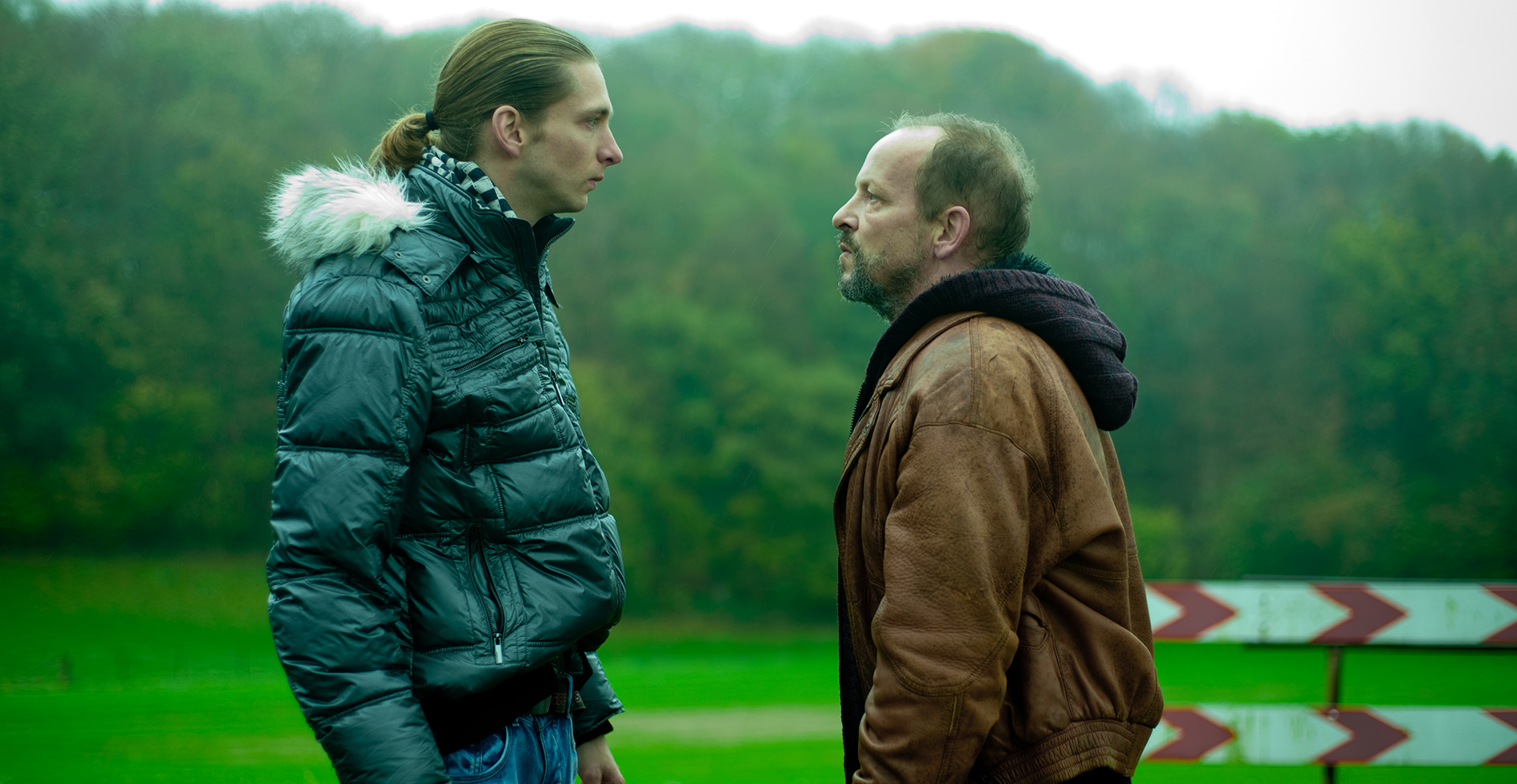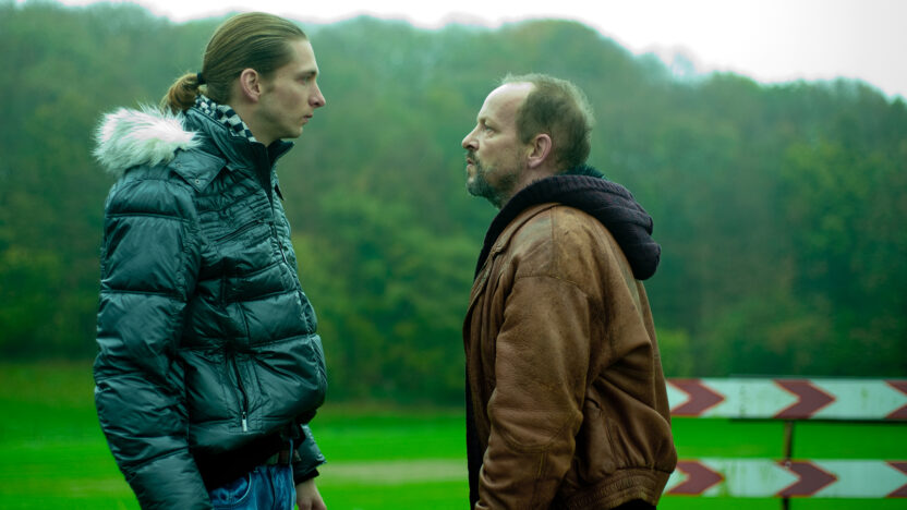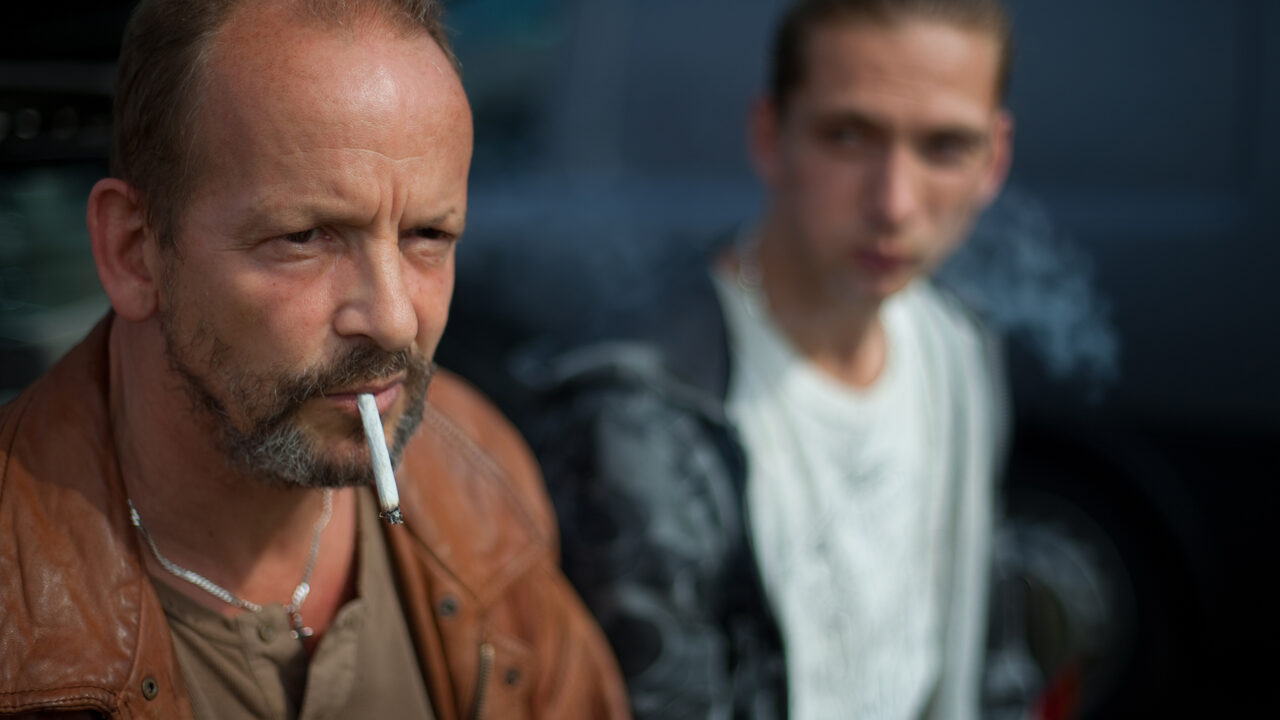 Vijftiger Lei (Bart Slegers) is een Zuid-Limburgse kruimeldief die met veel vallen en opstaan weet te overleven. Zijn zoon Jeffrey is alles voor hem; meer heeft hij niet. Het is deze verstikkende liefde die in Gluckauf centraal staat. Er rust echter een doem op, die zijn wortels heeft in de geschiedenis van de streek. De sluiting van de mijnen in dit vergeten gebied van Nederland is – zonder dat het opzichtig wordt ingewreven – voelbaar tot in de poriën van de vertelling, als een wond die maar niet wil helen. Deze doem (de ex-vrouw van Lei heeft het over ‘een straf’) krijgt een fraaie visuele vertaling. Als een voorbode van wat komen gaat, ogen veel ruimtes somber en duister. En tijdens de cruciale autorit van vader en zoon – het moment waarop hun verwijdering nagenoeg definitief is (als Jeffrey zegt dat Lei ‘als een wijf klinkt’) – zien we nog slechts een glimp van Leis gelaat, zijn we een fractie verwijderd van het inktzwart dat zal volgen. Remy van Heugten, zelf opgegroeid in deze streek, heeft er een persoonlijke, aangrijpende film van gemaakt die op alle niveaus overtuigt: scenario, spel, camera, artdirection en montage staan als een huis. De felrealistische stijl doet onmiskenbaar denken aan de films van de gebroeders Dardenne, die het gros van hun films slechts een steenworp verderop situeerden. Met Gluckauf heeft Nederland nu zijn eigen variant, even pijnlijk als krachtig.