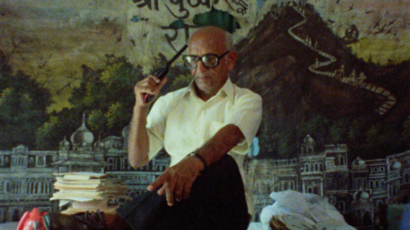 Kamal Swaroop is legendarisch in de Indiase avant-gardecinema; een ongrijpbare auteur van slechts enkele werken die zelden of nooit te zien zijn – of überhaupt vertoond mogen worden. Destijds viel Om Dar-B-Dar bepaald niet in goede aarde bij de autoriteiten, met als gevolg dat de film ‘spoorloos verdween’. Om Dar-B-Dar (een betekenisloze uitdrukking die door Swaroop wordt ‘vertaald’ als ‘I’m-Door-by-Door’) is een surrealistisch (anti)verhaal waarin de held Om maar in één ding heel goed is: zijn adem inhouden, terwijl zijn wetenschappelijk onderzoek (nou ja…) een nogal hoog magisch gehalte heeft. Zijn vader heeft al even buitenissige interesses en wijdt zijn leven aan astrologie; hij heeft er zelfs zijn baan als ambtenaar voor opgegeven. Maar dat klinkt allemaal veel gewoner dan deze vernietigend uitzinnige aanval op zo’n beetje elke heilige koe die India te bieden heeft in feite is.