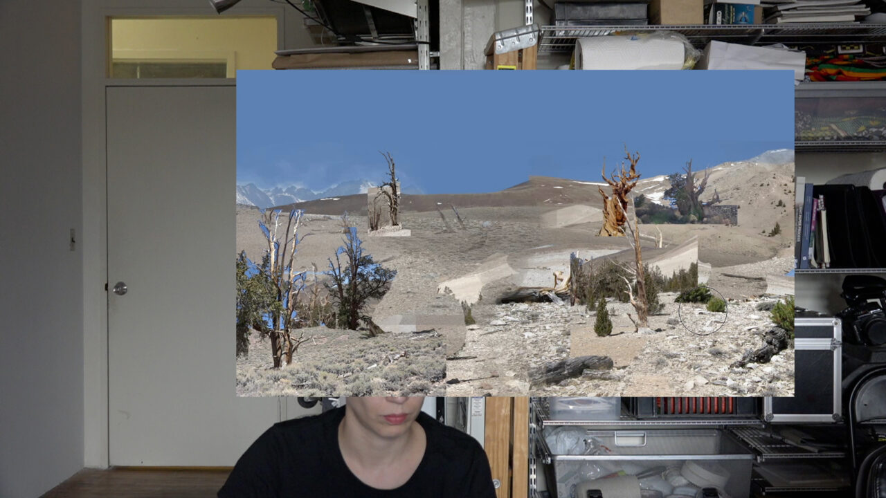 Lisa Oppenheim maakt video’s die historische beeldtaal en technieken verbinden met het heden. Deze film draait om taal, overerving en verbeeldingskracht. Het is een zoektocht naar en een 3D-reconstructie van Metusalem, met 5000 jaar de oudste levende boom op aarde. De exacte locatie is niet openbaar gemaakt.