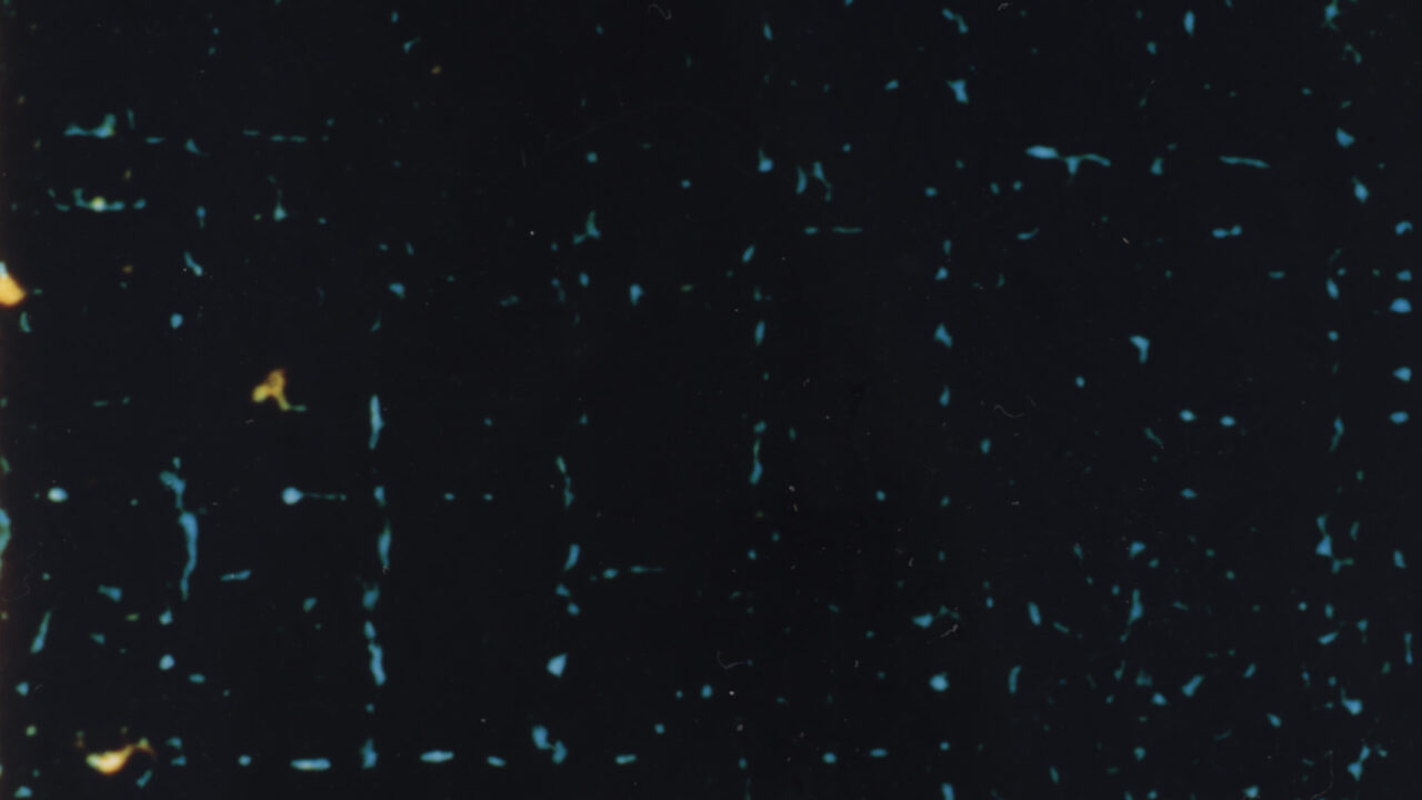 Korte studie voor de optische printer, op basis van found footage van vuur, gekleurd licht uit de printer en chemische manipulaties van de filmemulsie -