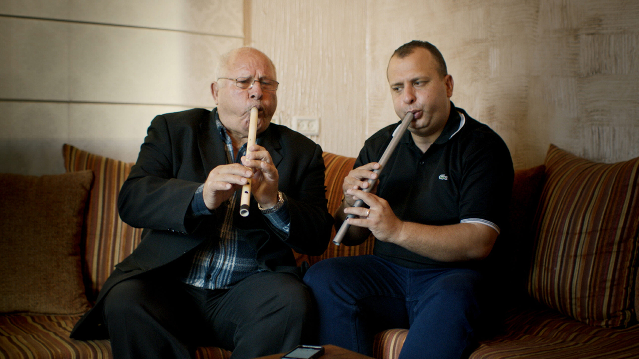 Een ode aan muziek die het onderscheid tussen ‘Arabieren’ en ‘Joden’, staatsgrenzen en politieke verschillen tenietdoet. Jumana Manna reist door Israël en Palestina met opnamen van de Duits-Joodse etnomusicoloog Robert Lachmann, die in de jaren dertig het radioprogramma Oriental Music presenteerde voor de Palestine Broadcasting Service. Als we in zijn voetsporen treden, hoe klinken die liedjes dan als ze nu worden uitgevoerd door Marokkaanse, Koerdische of Jemenitische Joden, of door Samaritanen, mensen uit Palestijnse steden en dorpen, bedoeïenen en Koptische christenen? Het reconstrueren van een veelzijdige muziekgeschiedenis van het historische Palestina en Manna’s eigen plek in dit geheel, vindt plaats in woonkamers, keukens, op veranda’s en in werkplaatsen tijdens het koken en het koffiezetten. Het conflict is dreigend aanwezig op de achtergrond, maar Manna doorbreekt soepel linguïstische, politieke, historische en territoriale scheidslijnen. Muziek als magische bruggenbouwer die diversiteit zichtbaar maakt en de logica van scheidslijnen en polarisatie verslaat.