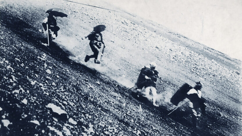 Achter grijze mistflarden, in sprookjesachtige landschappen, op alledaagse familiekiekjes, telkens is daar Mount Fuji, de Japanse berg met grote symbolische betekenis. Alle beelden inAscentzijn echt, maar het verhaal is verzonnen. Na History’s Future verkent Fiona Tan opnieuw de mogelijkheden van het medium film. De basisis een montage van duizenden foto’s met de beroemde vulkaan, bijeengebracht uit een groot aantal bronnen, van het Izu Photo Museum tot amateurfotografen. Op de expressieve soundtrack klinken de stemmen van de fictieve hoofdpersonen.