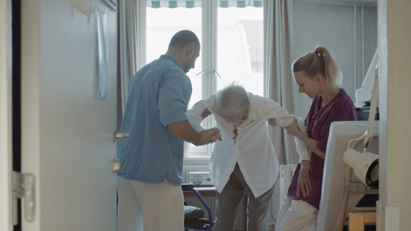 Zwijgzame, maar veelzeggende blikken in dit snelle drama waarin een saaie administratieve procedure een ongewenste familiereünie op een kraamafde -