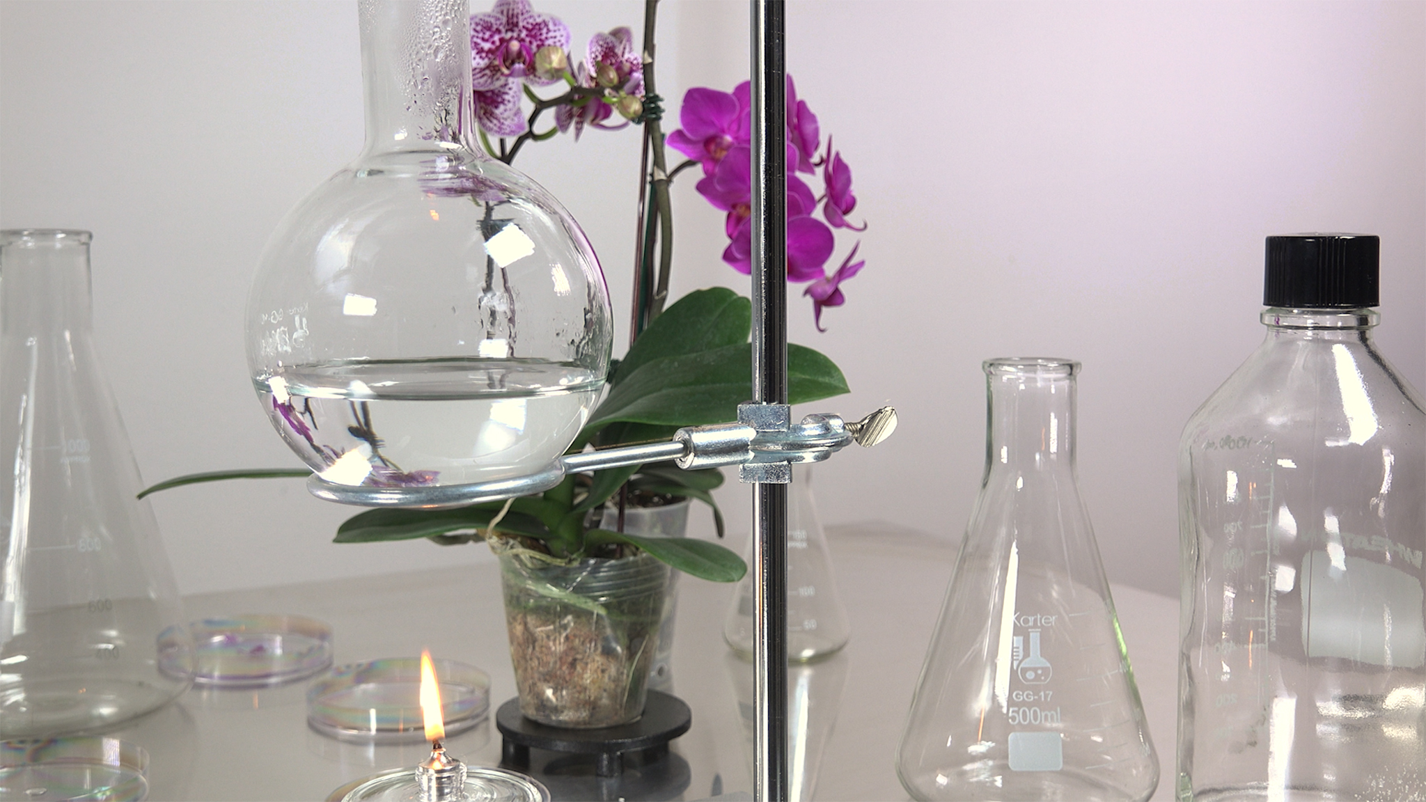Een wetenschapper is aan het werk in een mineralogisch laboratorium, grote meteorieten snijdend. Plotseling ontstaan fantastische vormen die laten zie -