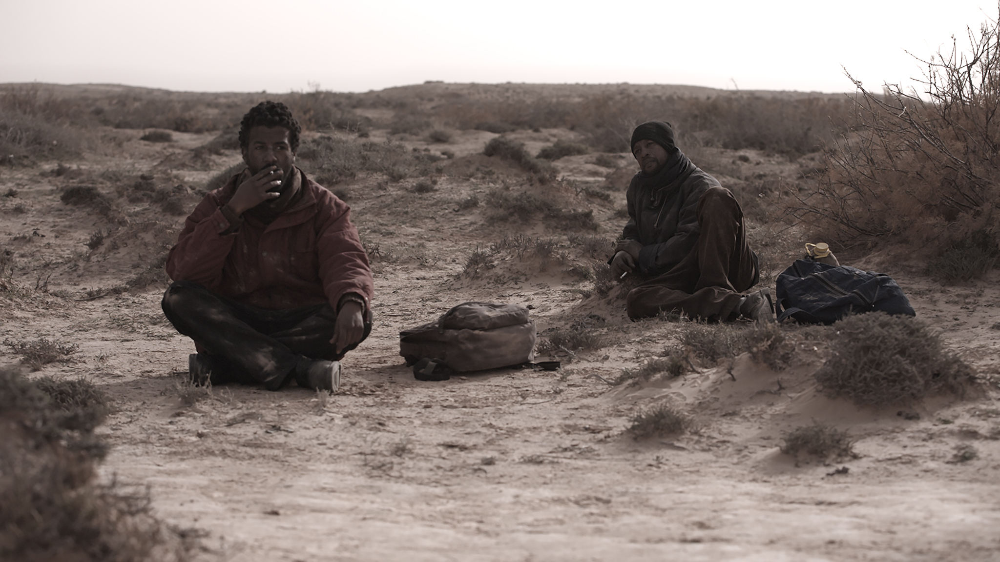 Twee mannen komen de woestijn uitlopen. Geen grap. Nadat ze slachtoffer worden van criminelen, bevindt N. zich alleen in Tunesië, overgeleverd aan de goden. Hoe Europa te bereiken? Hij steelt een boot en gaat de zee op, maar de boot zinkt. Vanaf dat moment verandert Ala Eddine Slims woordeloze debuut in een fabelachtige, surreële reis door een onbekend, onbevolkt land, hoewel nooit exact duidelijk wordt hoe natuurlijk of bovennatuurlijk de gebeurtenissen zijn. N. trekt over heuvels en door bossen en ontmoet uiteindelijk een man die een oudere versie van hemzelf zou kunnen zijn. The Last of Us kan het Platonische idee van een reis verbeelden, de tijdloze odyssee van de vluchteling, een laatste visioen terwijl N. sterft na het zinken van de boot of een mythische zoektocht naar al die vluchtelingen die hun reis niet overleven. Zoals Rithy Panh in The Missing Picture (2013) zoekt naar het ontbrekende beeld bij een immense tragedie, zoekt Ala Eddine Slim naar het ontbrekende lichaam.