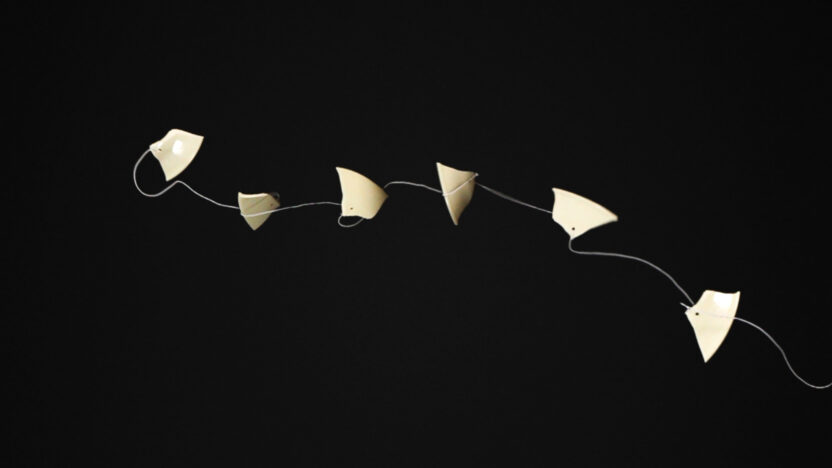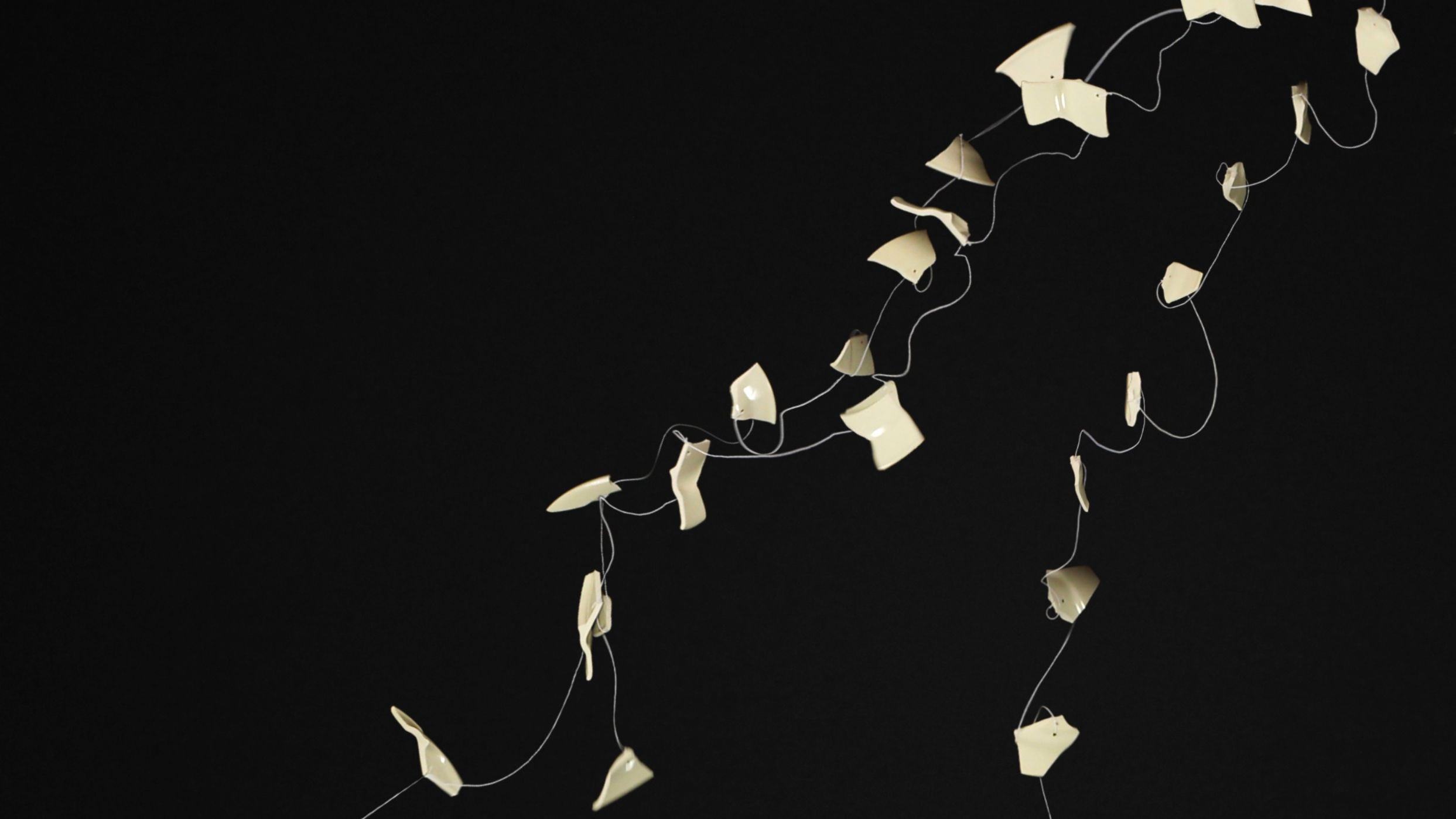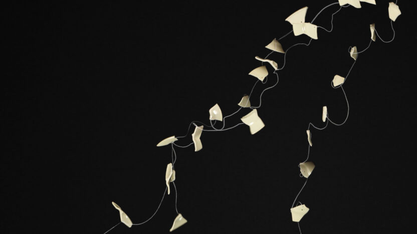 Vanuit alle richtingen trekt de zwaartekracht aan de scherven van een brekend dinerbord. Na hun uiterste grenzen te hebben bereikt, helpen elastische snaren de scherven terug te gaan naar het beginpunt. De scherven vormen dan samen een uiteengevallen structuur, terwijl ze tegelijkertijd hun op zichzelf staande eigenschappen uitdrukken in beweging, positie en geluid. Voorfilm bij Pity.