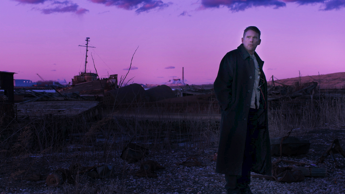 In de meest recente film van Schrader draait het om de Dutch gereformeerde dominee Toller (een indrukwekkende Ethan Hawke), die getormenteerd door de dood van zijn zoon zich in de nachtelijke uren met veel whiskey en maagpijn aan een niets ontziend dagboek zet. Dat deed de cinefielen al snel denken aan Bressons Journal d’un curé de campagne – en ook de invloed van bijvoorbeeld Dreyer en Bergman is onmiskenbaar.