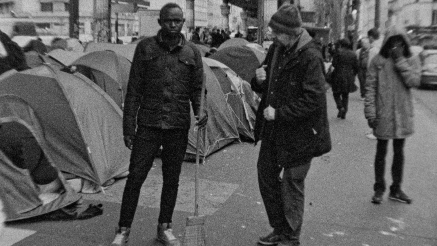 Glimpse registreert het leven in vier Europese vluchtelingenkampen, waaronder de ‘jungle’ in Calais. In een stijl die aan oudere etnografische en propagandistische films doet denken, worden mannen en families op directe, compromisloze manier vastgelegd – zonder geluid, in zwart-wit en op 16mm gefilmd. Je blijft kijken, ondanks de rauwe confrontatie met de armoede en hopeloosheid die wij liever niet willen zien, en de provocatie van regisseur Artur Żmijewski, die gedurende de film steeds verdergaat in het spel tussen wat wel en niet wordt geaccepteerd.