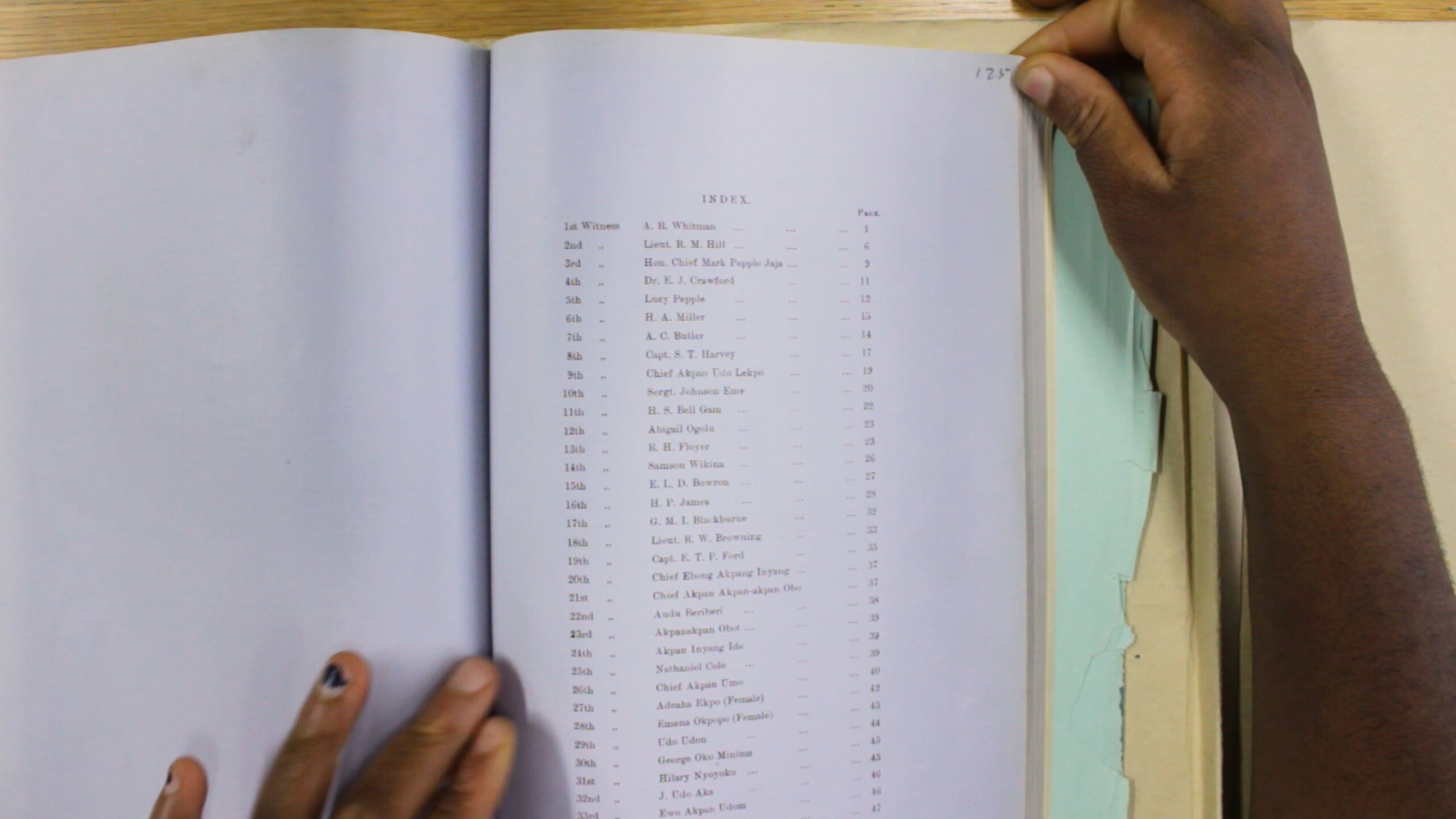 Her Name Is in My Mouth werpt een nieuwe blik op de Aba-vrouwenopstand in 1929, de eerste grote antikoloniale opstand in Nigeria, met behulp van belichaming, gebaren en archiefmateriaal. De film is opgebouwd rond archieffilms van de Britse propagandatak, afgezet tegen in gebaren uitgedrukte getuigenverklaringen van de vrouwen. (Onyeka Igwe)