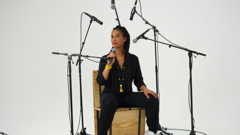Spelend met de illusie van een scenario met twee lagen creëerde Grada Kilomba een zwijgende film waarin de personages een witte ruimte binnengaan terwijl de kunstenaar buiten commentaar geeft op de beelden en een eigentijdse ‘griot wordt, inclusief postkoloniale urgentie. “Soms voelt het of ik leef in een ruimte van tijdloosheid”, vertelt de kunstenaar, “in een ruimte waarin heden en verleden lijken samen te vallen.”