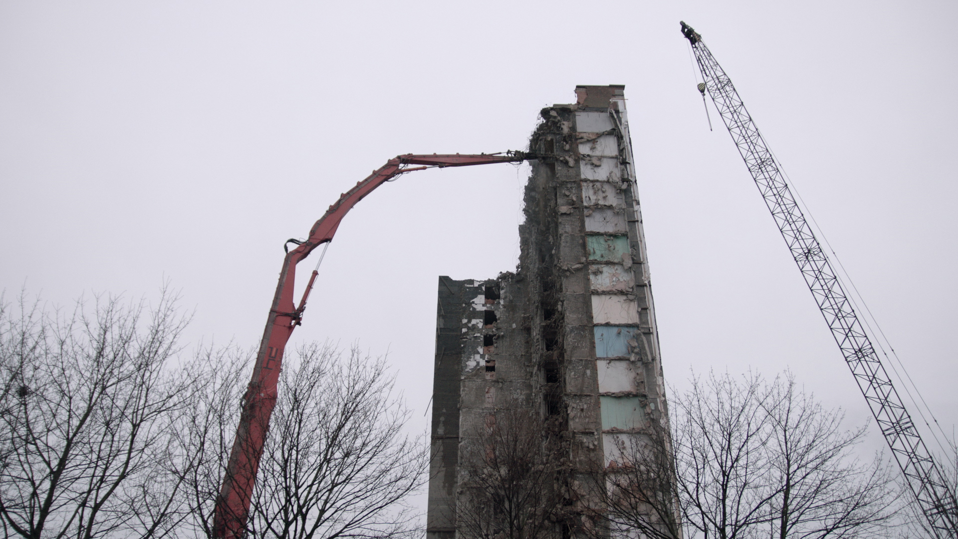 Alle valkuilen en onrechtvaardigheden van het leven komen voorbij in deze caleidoscopische documentaire over de bewoners van een vervallen woontoren in Gent in de maanden voordat deze tegen de vlakte gaat. Schijnbaar willekeurig springen de statische, van standpunt wisselende shots van de ene bewoner naar de andere. De camera observeert hen met intieme aandacht, maar houdt toch ook afstand. Sommigen verlaten de blokkendoos met weemoed, anderen sluiten dit hoofdstuk graag af in de hoop op gelukkiger tijden. Ze worden gefilmd tijdens hun dagelijkse beslommeringen, al etend, terwijl ze televisie kijken. Banaler kan het bijna niet, en toch roepen de raak gekozen beelden door hun context, zorgvuldige opbouw en beeldcompositie een veelheid aan gedachten en gevoelens op. Dit rijkgeschakeerde portret over armoede, eenzaamheid, onverschilligheid, maar ook over liefde eindigt met enige verlichting – in videoclipstijl. De verschillende bewoners dansen in hun nog ingerichte kamers op een nummer dat muzikanten later in hun inmiddels verlaten woningen live spelen.