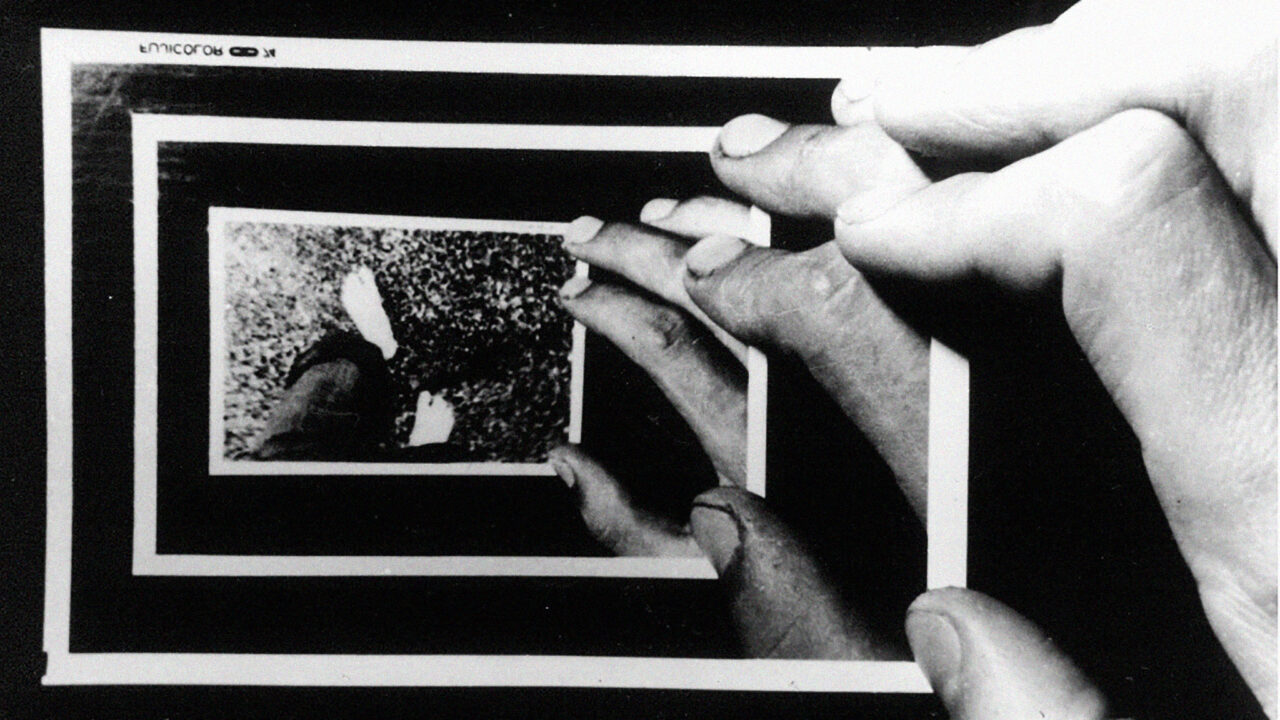 Een serie over de beweging van het blootsvoets door de zeegolven lopen, gemaakt met behulp van een paar honderd foto’s. Net als het neerleggen van speelkaarten op tafel, kun je het snel en stelselmatig tonen van deze foto’s zien als een ‘bewegende puzzel’. (Image Forum)