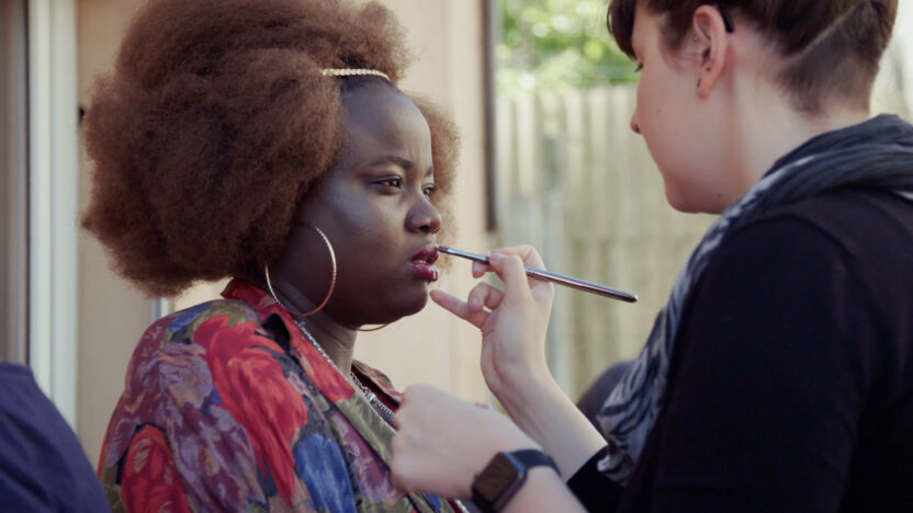 Documentairemaker Sanaz Azari laat ze zien terwijl ze geschminkt