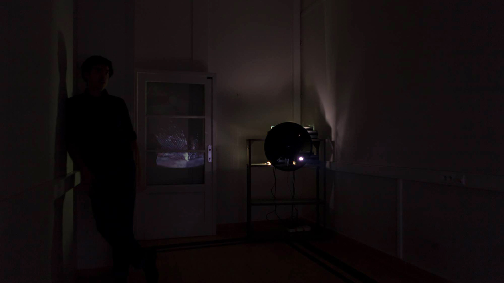 Fossil Locomotion bestaat uit foto’s van de fossielenverzameling van de familie van de kunstenaar en onderzoekt de beweging die fossielen tot leven wekt na millennia inactiviteit. Vier overlappende, gesynchroniseerde diaprojecties door een draaiende schijf brengen de fossielen in beweging en geven ze een nieuw leven in de duisternis.
