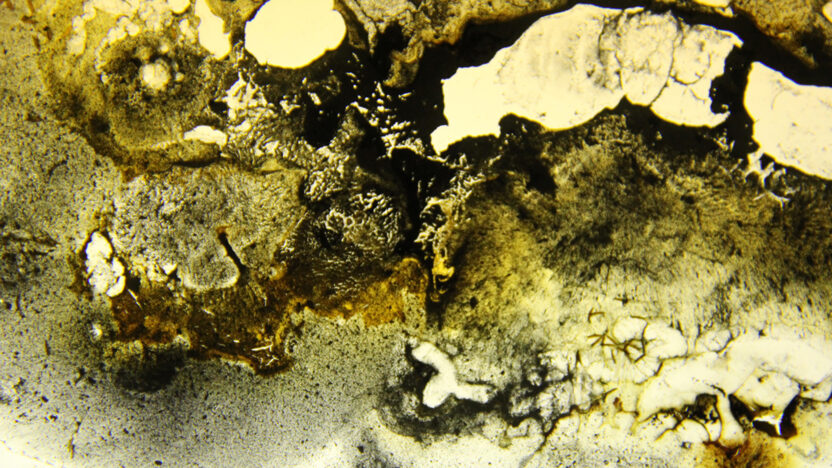 Zinderende spiralen veranderen in mysterieuze cellen van gouden stof: deze lichtgevende deeltjes zijn de droom van de alchemist. -
