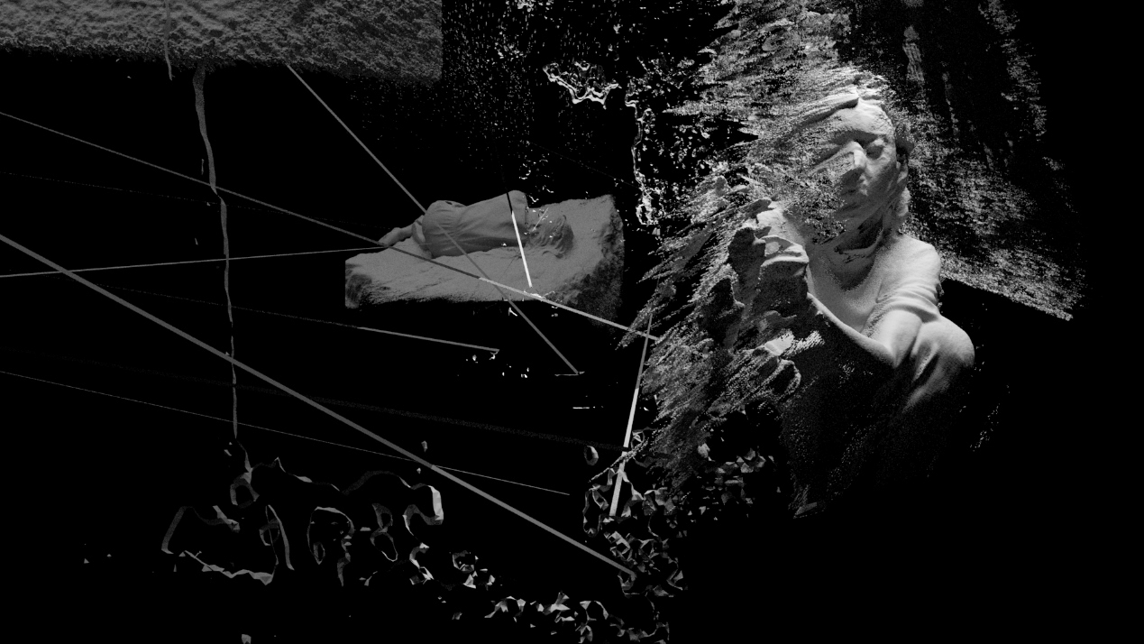 L’Hoest maakte 3D-scans van slapende mensen die ze samen met Thomas Depas overzette naar 16mm-film en terugkopieerde naar video. Korrels, pixels en informatieverlies door analoge en digitale omzettingen leiden tot vervreemdende ‘futuristisch archeologische’ beelden, begeleid door elektro-akoestische ambient en Vincent Werbrouck op cello.