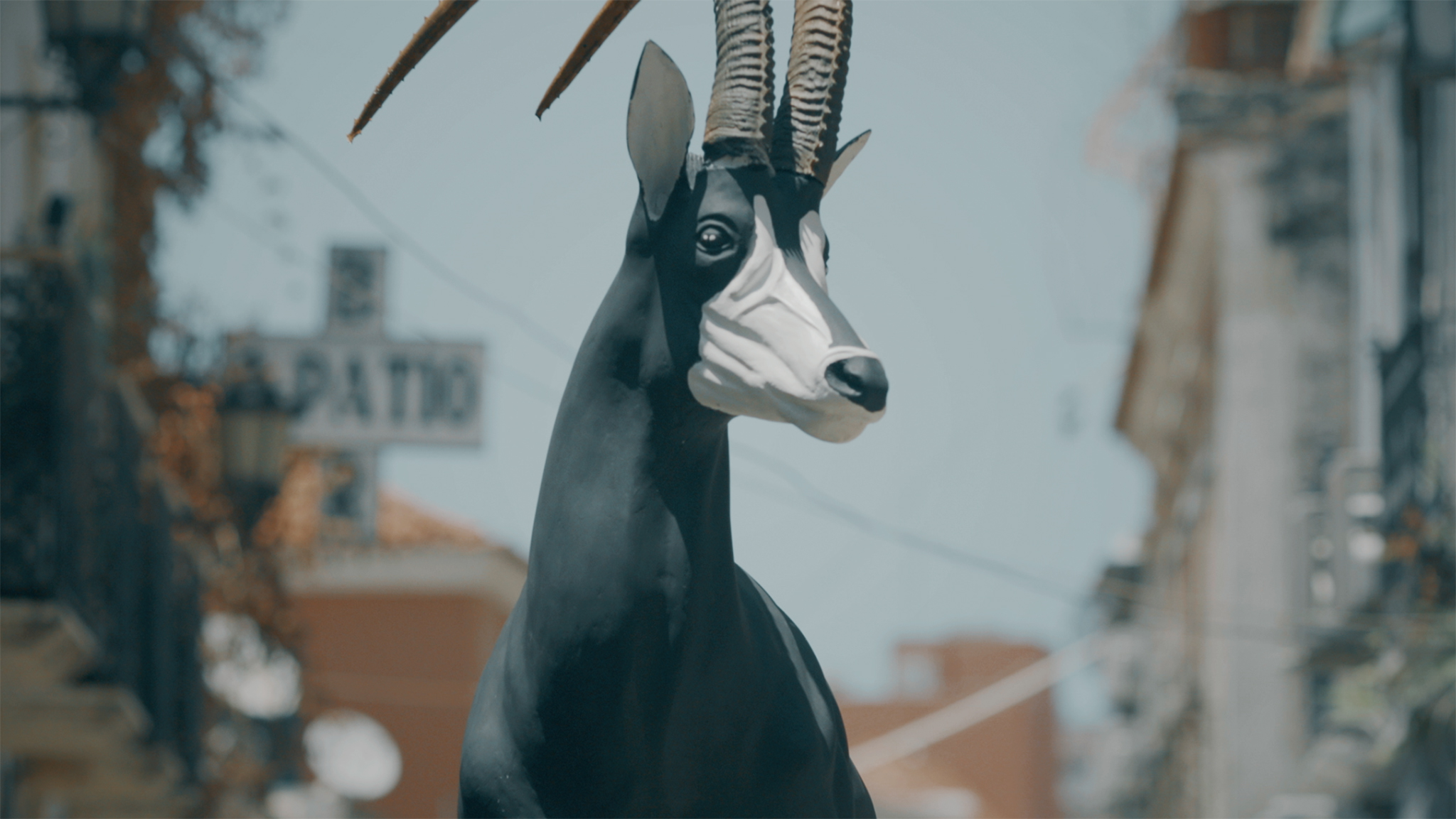 De complexe geschiedenis van Angola gezien door de ogen van een opgezette antilope. Ze neemt ons mee op een reis die het koloniale verleden verbindt met het huidige Angola. Deze uitgesponnen overpeinzing over het conserveren van herinneringen is een mix van geschilderde geschiedenis en een levende optocht door de straten.