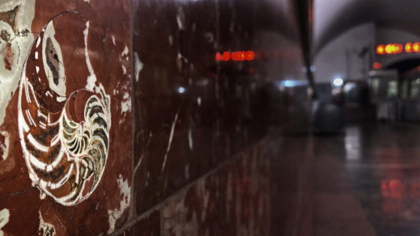 Metrostellen worden in de oceaan gedumpt, bestemd om een kunstmatig koraalrif te worden. En in treinstations van de voormalige Sovjet-Unie herkennen we fossielen van onderwaterdieren. Samen geven ze blijk van volharding en verstening, en staan ze symbool voor radicale transformatie door de tijd. (Erika Balsom)
