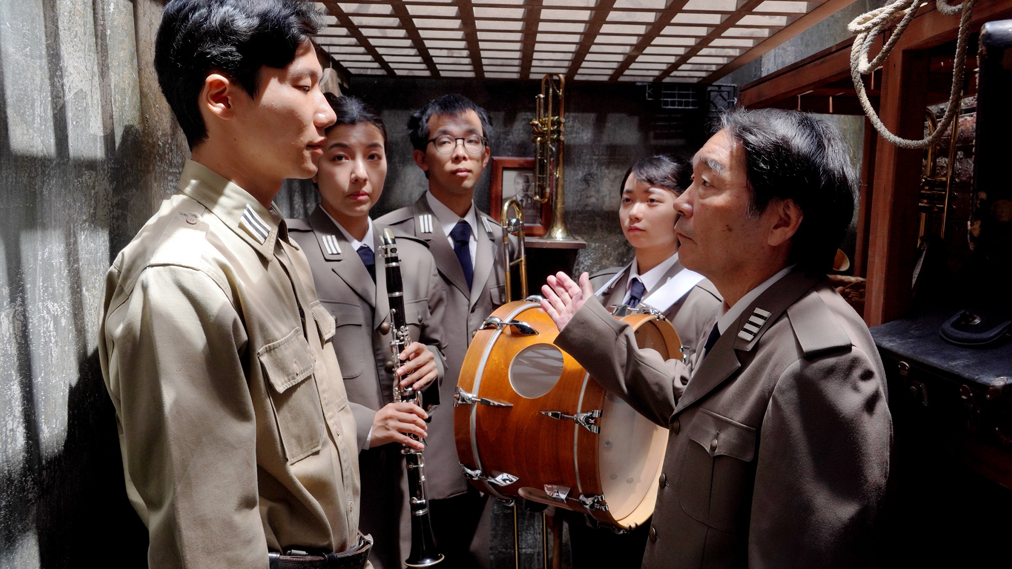 Wanneer het begonnen is en waarom ze oorlog voeren, weten de soldaten niet meer. Plichtsgetrouw – bevel is bevel – marcheren zij elke ochtend naar de rivier. Tussen 9 en 5 beschieten zij vanaf de oever het dorp aan de overkant, en dat al decennia lang. Als soldaat Tsuyuki wordt overgeplaatst naar de militaire blaaskapel, krijgt hij keer op keer de vraag voorgelegd welk doel muziek nou eigenlijk dient in een oorlog.