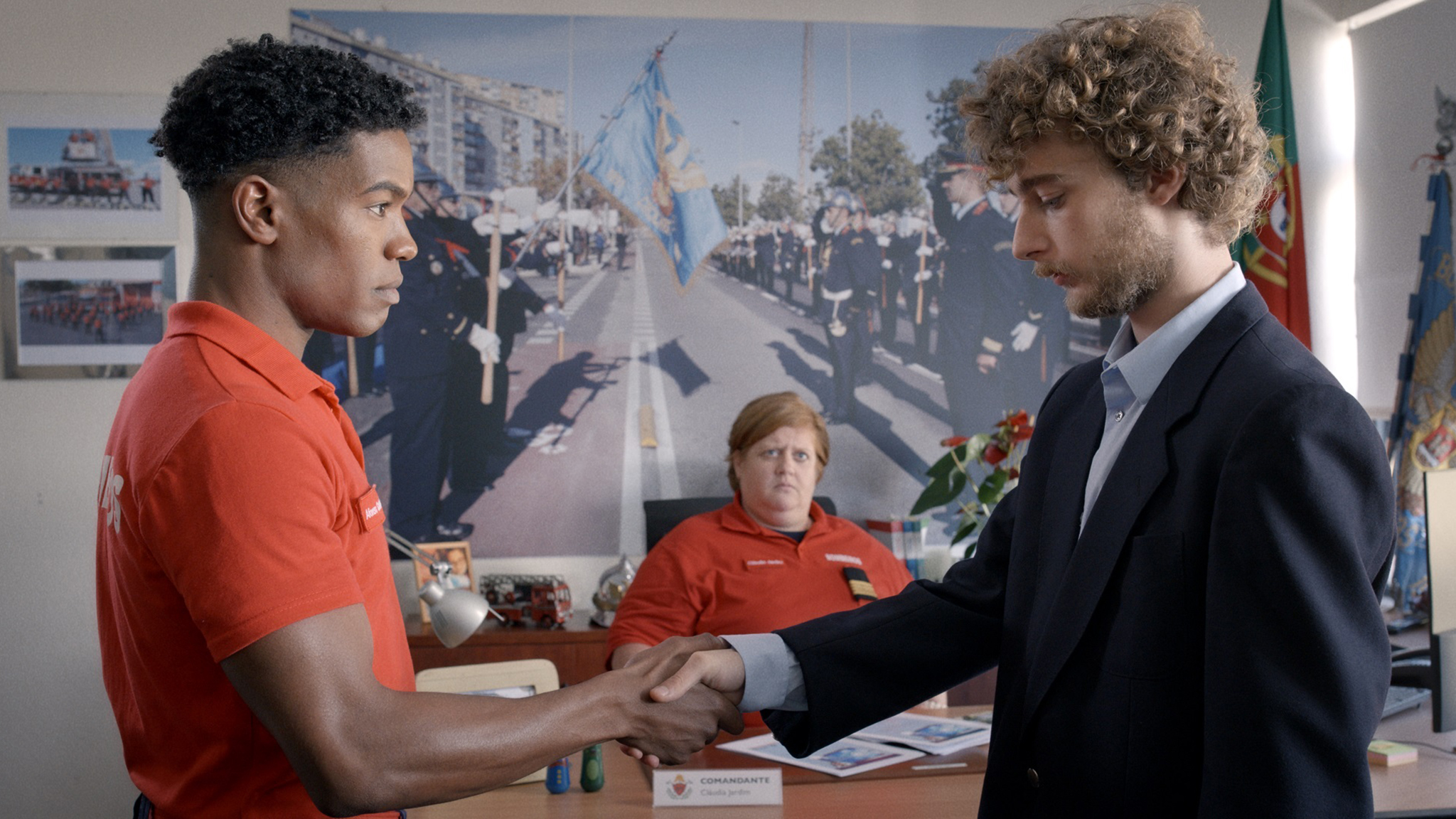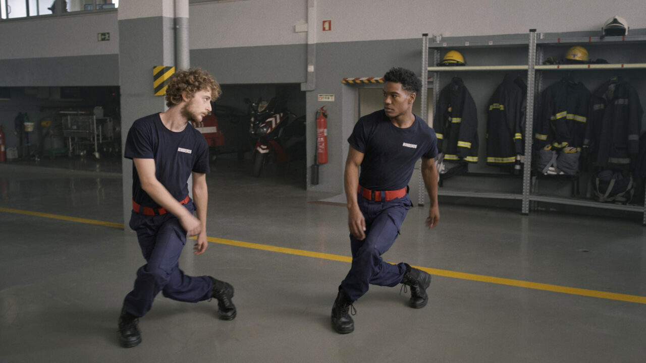 Fogo-Fátuo speelt zich af in verschillende tijdsgewrichten, waaronder de toekomst, en verwijst duidelijk naar onze huidige, door COVID-19 getroffen wereld. Dat de film tijdens de pandemie tot stand is gekomen, is terug te zien in het minimalisme van de personages en decors. Maar wat een talent, levendigheid, humor en veelzijdigheid laten Rodrigues en zijn vaste medewerkers, onder wie João Rui Guerra da Mata, zien in dit project! De film begint als een portret van een fictief Portugees koningshuis – bekrompen, excentriek en theatraal, met wortels in het koloniale verleden van het land. De wens van de oudste zoon, Alfredo, om brandweerman te worden, leidt al snel tot een zinderende romance met collega Alfonso.