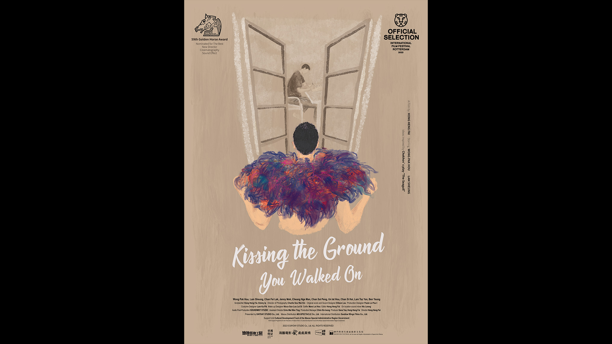 Kissing the Ground You Walked On, een bewerking van De meeuw van Anton Tsjechov, verkent de driehoeksverhouding uit het stuk via mannelijke personages. Er wordt een aantal keer direct naar Tsjechov verwezen: de internationale titel is een regel uit het stuk, de oorspronkelijke titel is te vertalen als ‘de kamer waar de meeuw verbleef’ en Chiang speelt op het toneel natuurlijk een meeuw (Nina). Maar in Hong Heng-fai’s speelfilmdebuut ligt het accent meer op sensuele expressie dan op woorden.