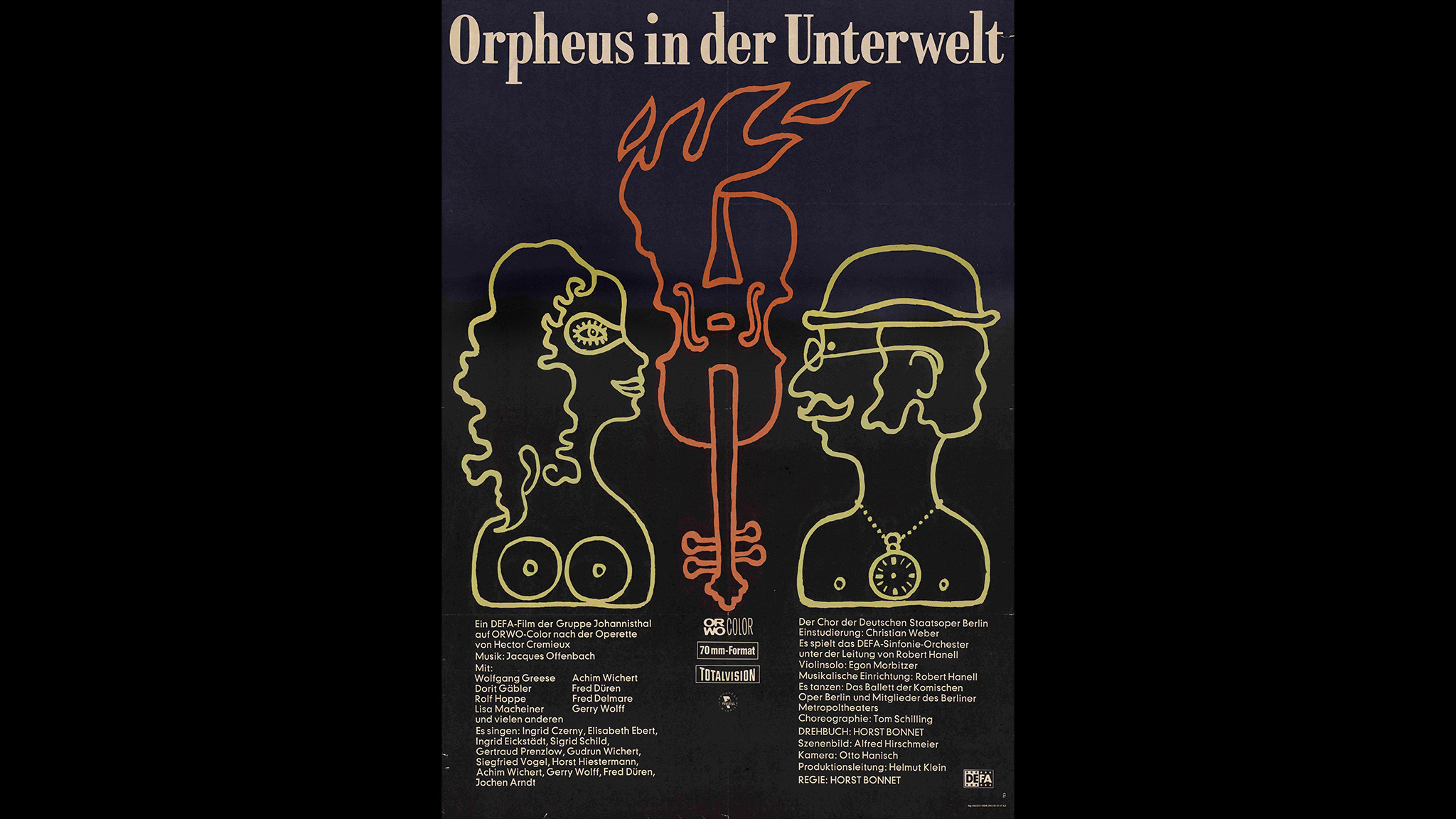 Begin jaren 60 vroeg de staatsfilmstudio van de DDR, DEFA, aan Horst Bonnet, een beroemde muziektheaterregisseur en voormalig assistent van Bertolt Brecht en Walter Felsenstein, om een operettefilm te maken. Bonnet stemde toe, maar wilde het genre eerst beter leren kennen en testte zijn vaardigheden in Salon Pitzelberg (1964), een bewerking van Jacques Offenbachs gelijknamige eenakter, als onderdeel van de satirische kortefilmreeks Das Stacheltier. Pas in 1968 besloten DEFA en Bonnet op welk werk zij hun film zouden baseren. Het werd opnieuw een Offenbach, maar deze keer Orphée aux enfers. In de preproductiefase vielen Warschaupact-troepen de ČSSR binnen – Bonnet protesteerde en moest dertien maanden de cel in. DEFA toonde zich stilzwijgend solidair door het bijzonder prestigieuze project uit te stellen tot na zijn vrijlating.