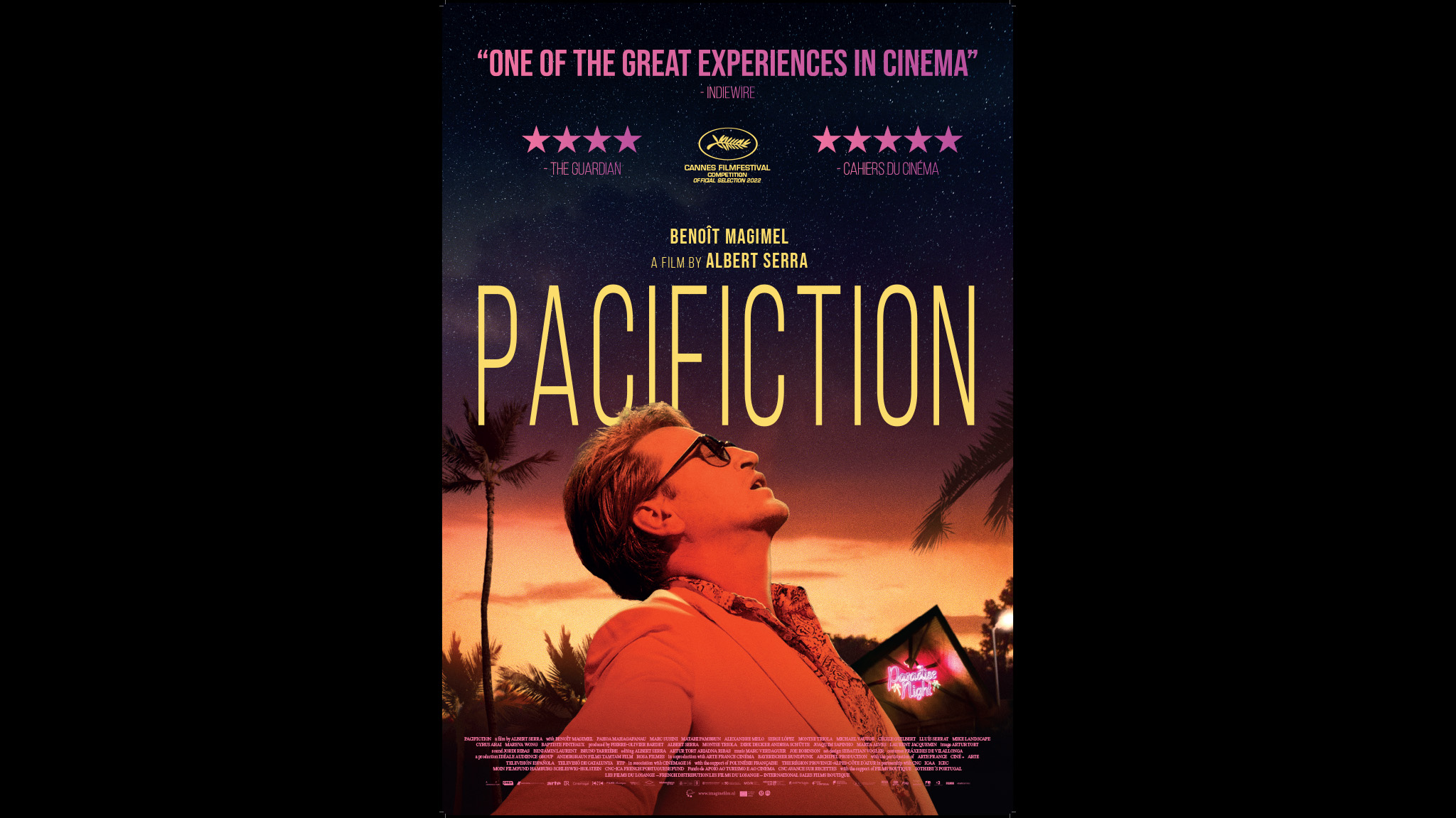 “Politiek is net een nachtclub.” Dit citaat van de verveelde antiheld De Roller (een geweldige Benoît Magimel) vormt de kern van Pacifiction. Als Hoge Commissaris van hedendaags Frans-Polynesië slijt hij zijn dagen op bijeenkomsten (zakelijk en anderszins), in bars en op adembenemende eilandlocaties.