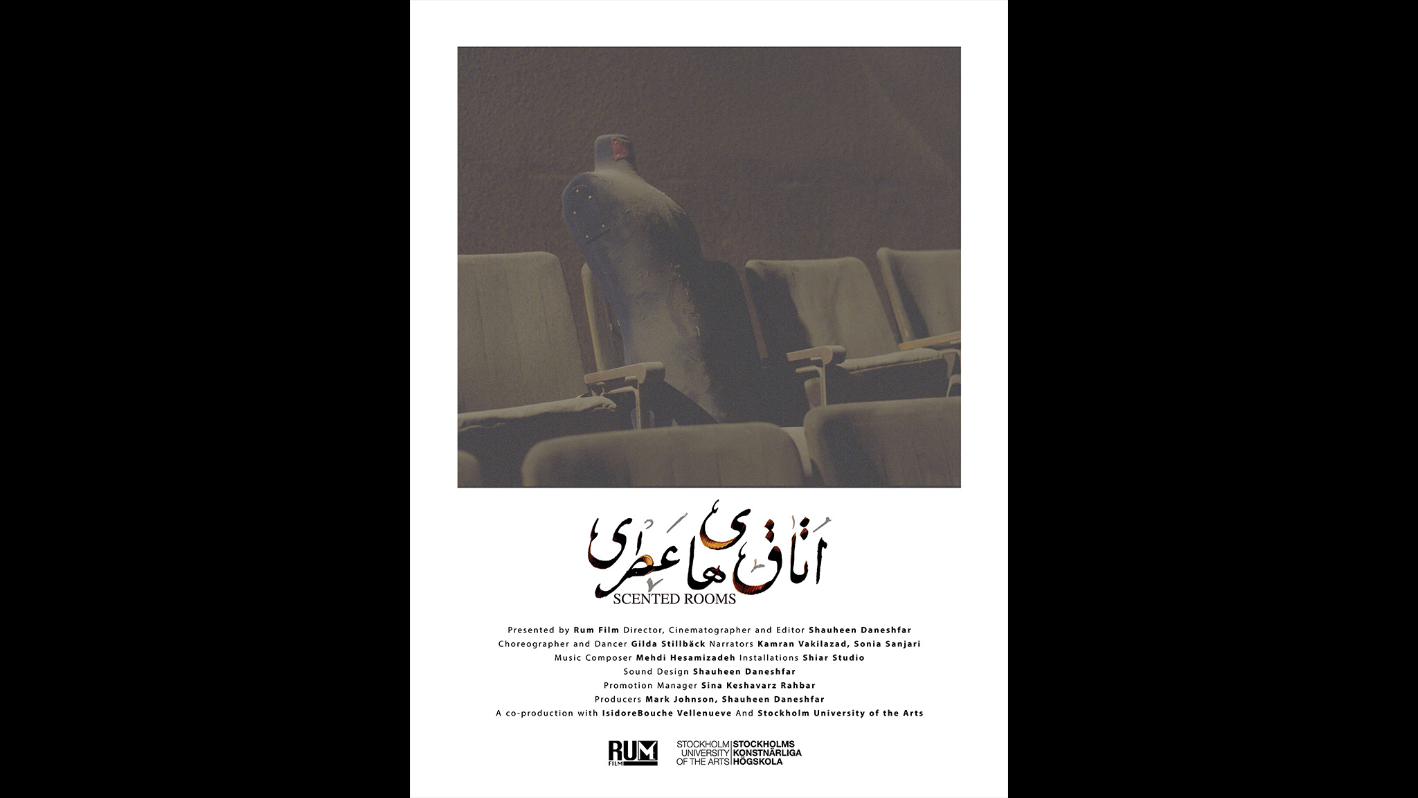In 1979, na de Islamitische Revolutie, werden in heel Iran theaters gesloten, waaronder het oudste, het in 1915 gebouwde Tamashakhaneh Tehran. Filmmaker Shauheen Daneshfar verkent het stoffige, vervallen interieur met 35mm-film en brengt een verleden vol artistieke expressiviteit en verzet tot leven met behulp van archiefbeelden, gechoreografeerde re-enactments, en herinneringen van verbannen en onderdrukte kunstenaars en artiesten. Scented Rooms is een krachtige, poëtische ode aan een tot zwijgen gebracht, maar nog sterk aanwezig verleden.