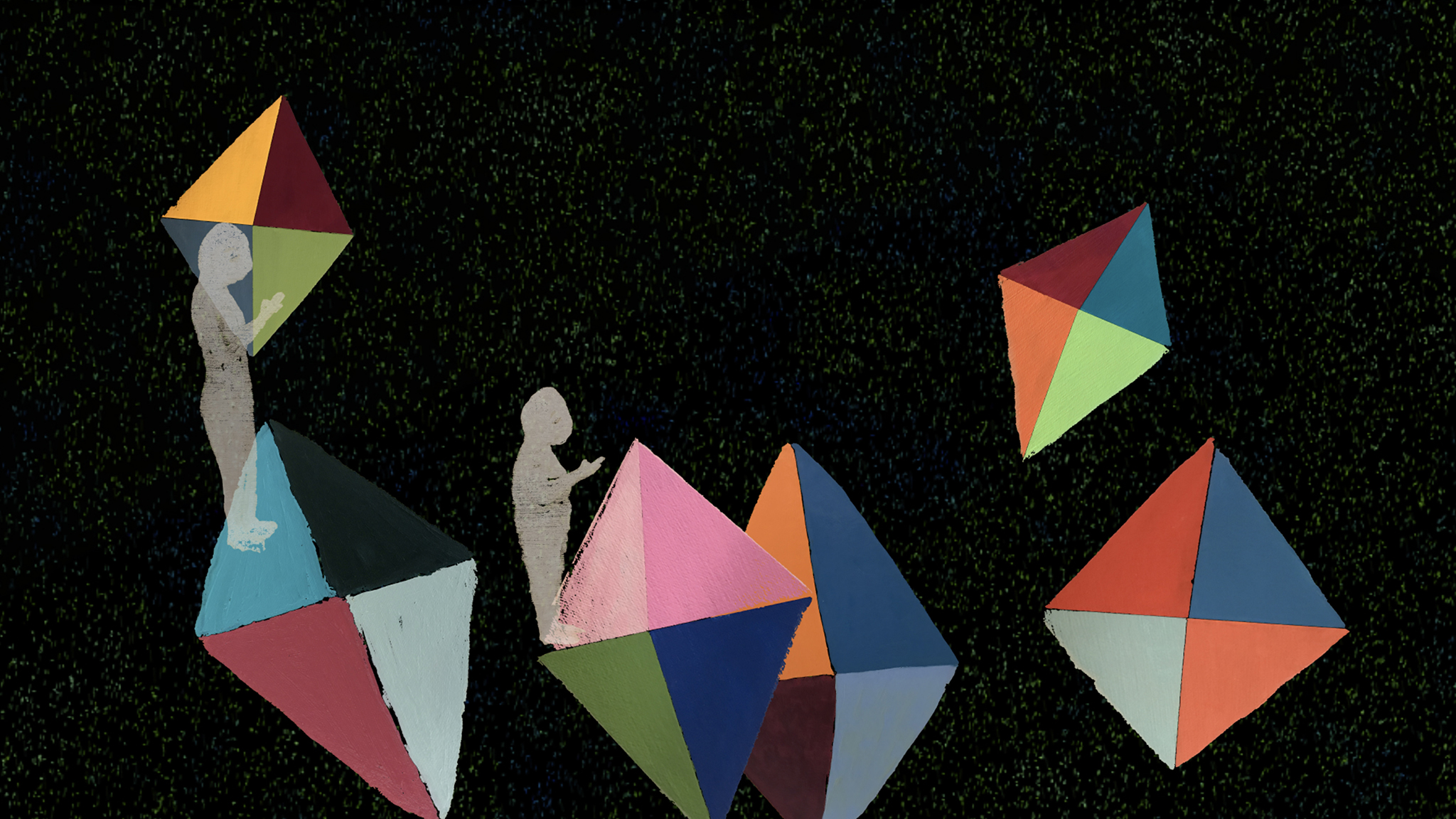 Landschappen die branden en overstromen, verschuiven en instorten in een onzekere wereld. Menselijke figuren staren op hun telefoon terwijl ze de rivier afdrijven en uit de lucht vallen. Een abstracte verkenning van het bekende dat onbekend wordt, waarin geschilderde animaties de onzekerheid die ons omringt zichtbaar maken.