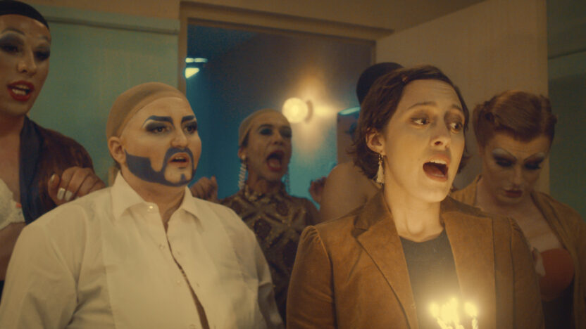Door het heerlijk kitscherige production design, de flamboyante loverrijke kostuums en de sabotagetaferelen die niet zouden misstaan in Showgirls (1995) of de Werk Room in Drag Race is Stiekyt een film die onbeschaamd zichzelf durft te zijn in al zijn gestoorde, glinsterende glorie.