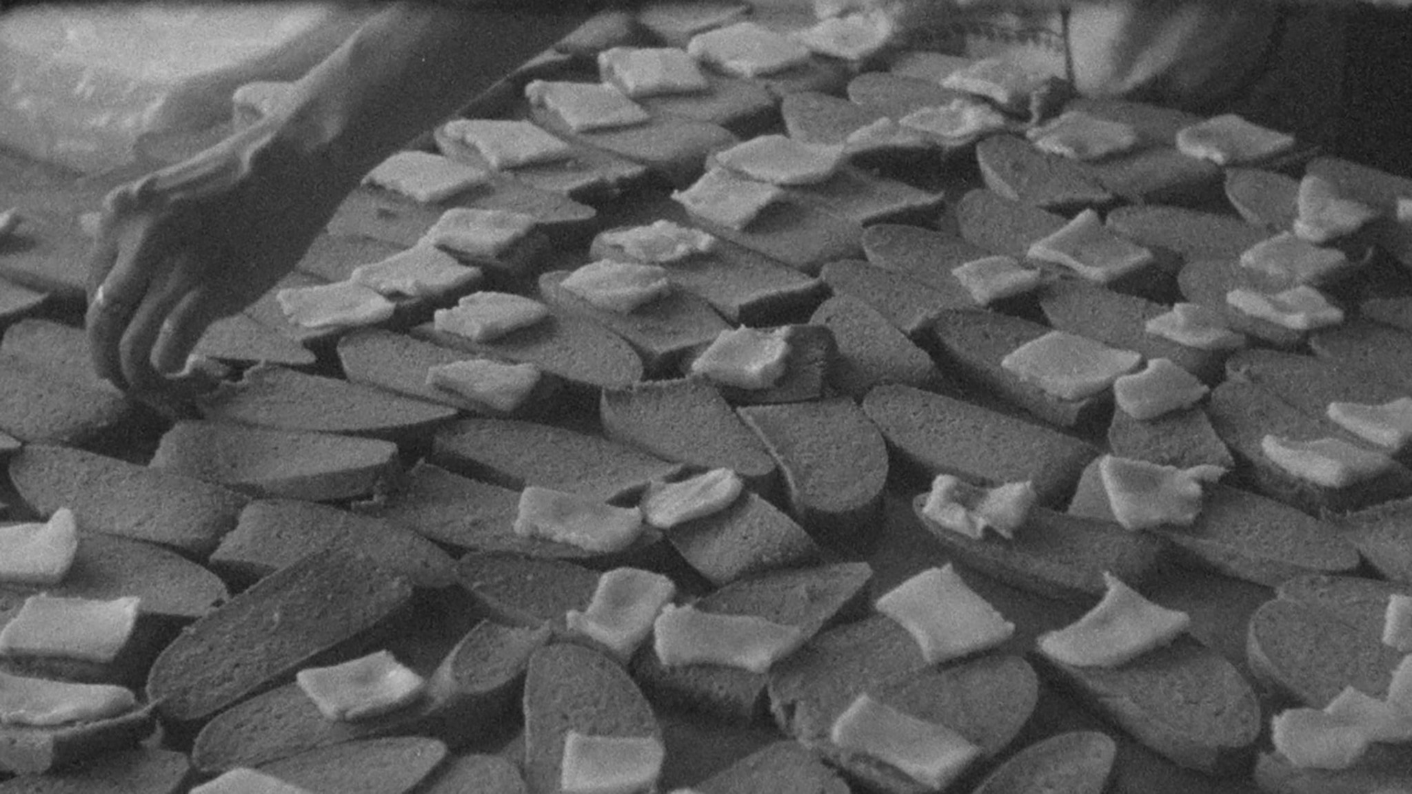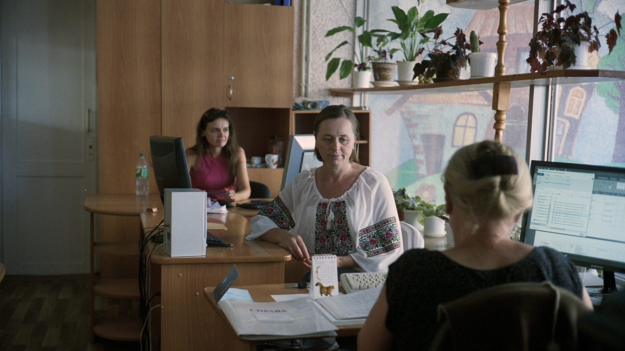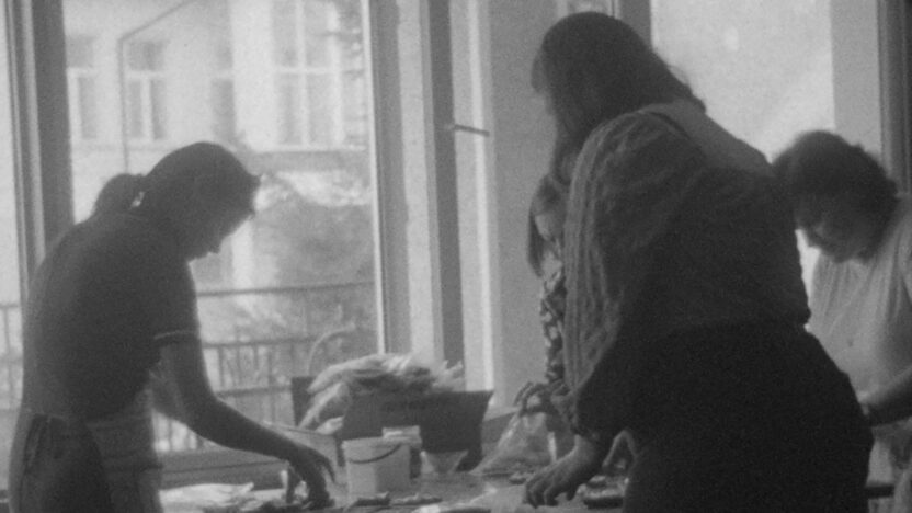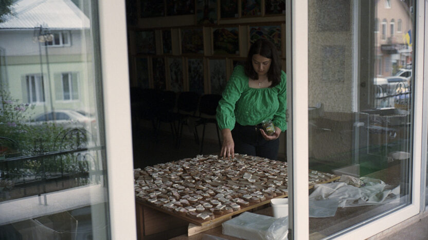 Een hypnotiserende bromtoon klinkt, terwijl zwart-witbeelden tonen hoe een groep vrouwen zakjes vult met gedroogde groenten, broodjes smeert en vacuüm verpakt, en camouflagenetten weeft. Dit is niet zomaar een onderonsje, want deze samenkomst blijkt een hoger doel te dienen: we kijken naar de ongeziene praktijken aan het thuisfront van de oorlog in Oekraïne. Centre for Creativity biedt een hoopvol perspectief en toont hoe het dagelijkse werk in het teken staat van overleven, solidariteit en creativiteit.