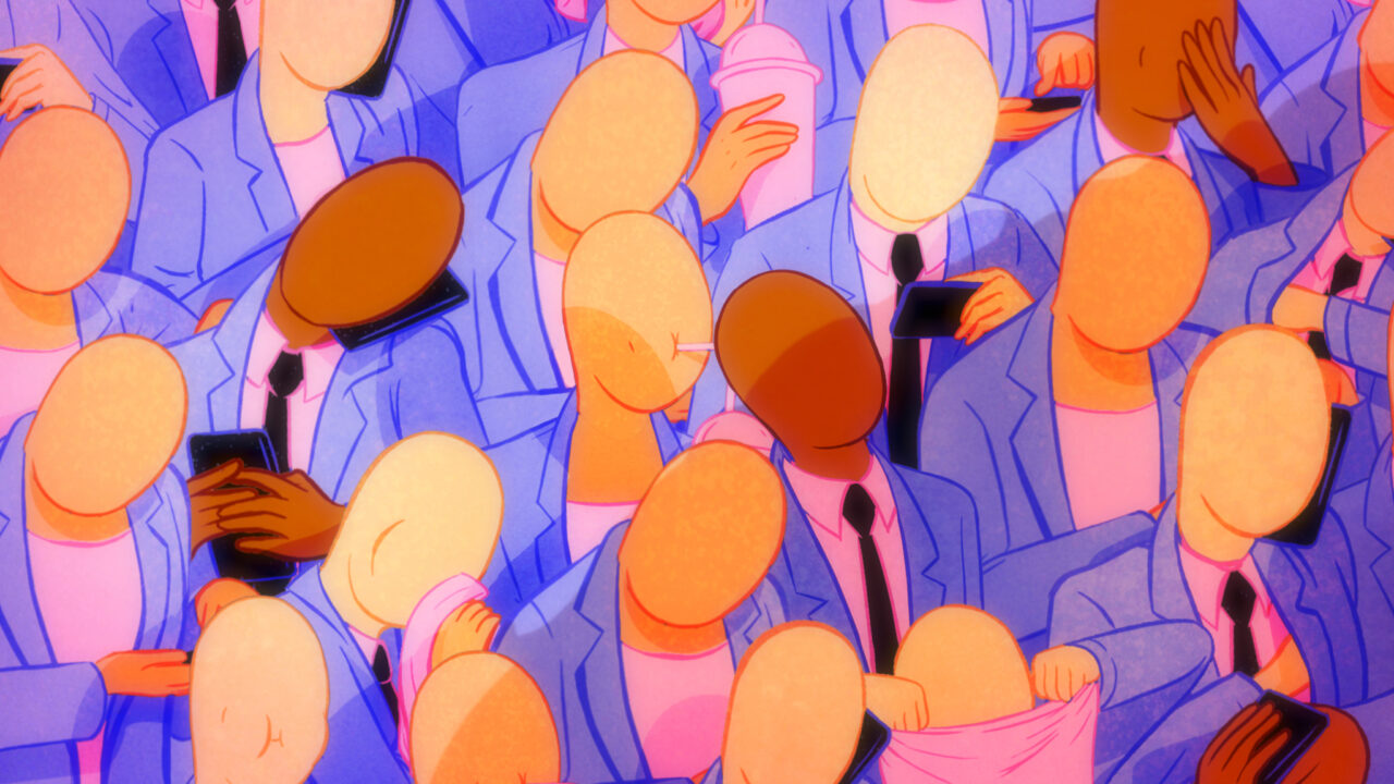 Een glimp van micro-agressies in de zielloze, betonnen jungle van zakendistrict La Défense in Parijs. -