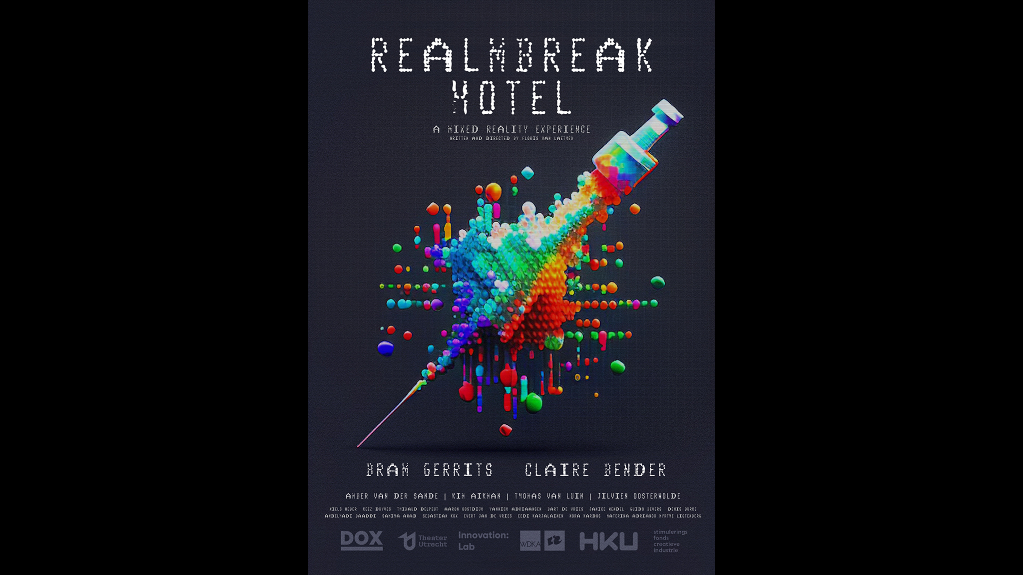 Je broer Jacob verschuilt zich al een tijdje in het Realmbreak Hotel, een wereld vol met verslavende pixels waaraan velen langzaam wegkwijnen. Lukt het je hem te overtuigen om terug naar huis te komen, of raak je jezelf erin kwijt? Zet je VR-headset op en stap rechtstreeks in deze dromerige pixelwereld, waar je door een fysiek gebouwde set loopt en met je microfoon communiceert met je mede-personages, om zo je eigen verhaal vorm te geven. Achter de schermen worden deze personages live geacteerd door onder andere acteurs Bram Gerrits en Claire Bender. Te veel druk op je schouders? Je kunt ook meekijken hoe iemand anders de uitdaging aangaat.