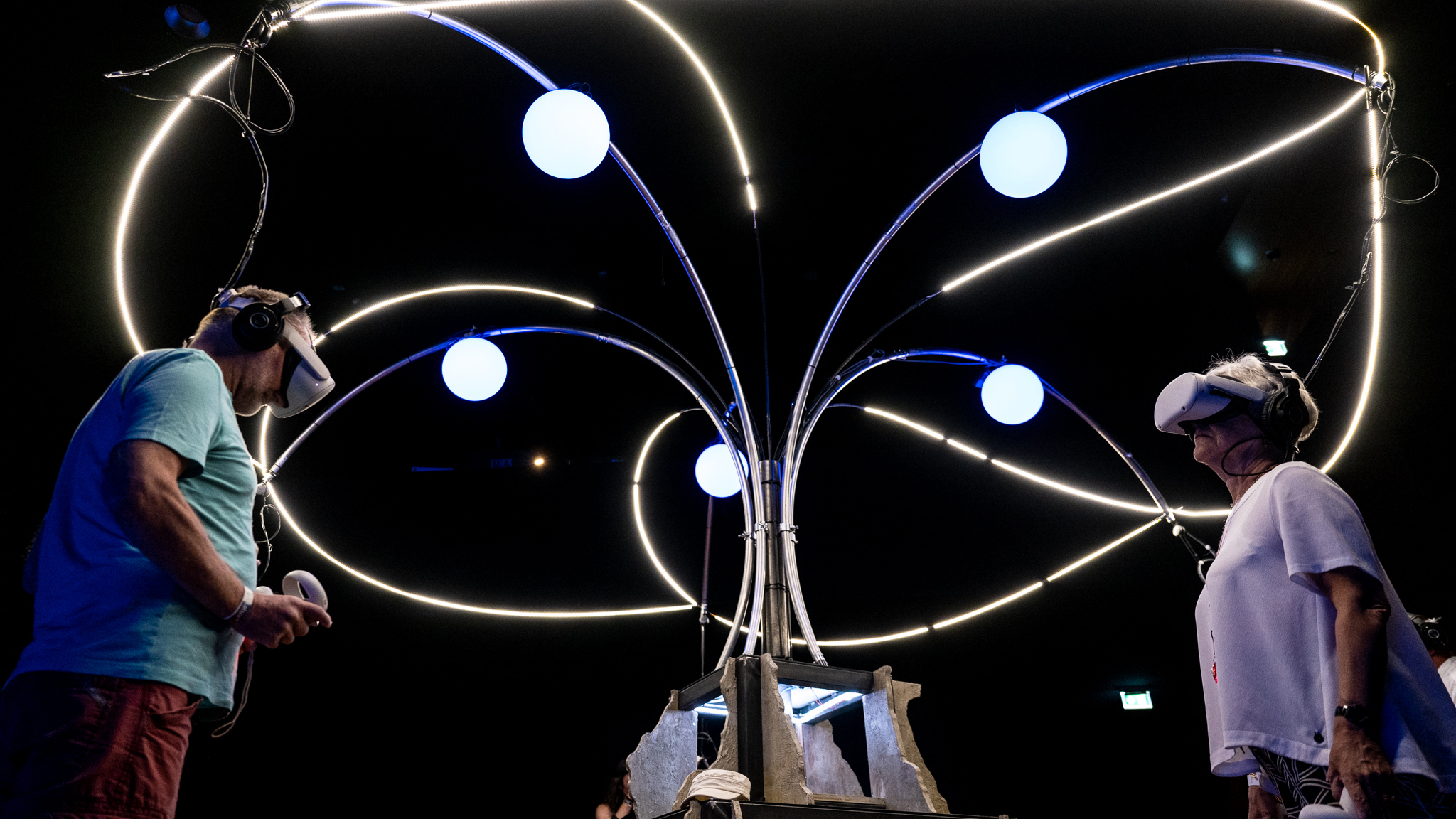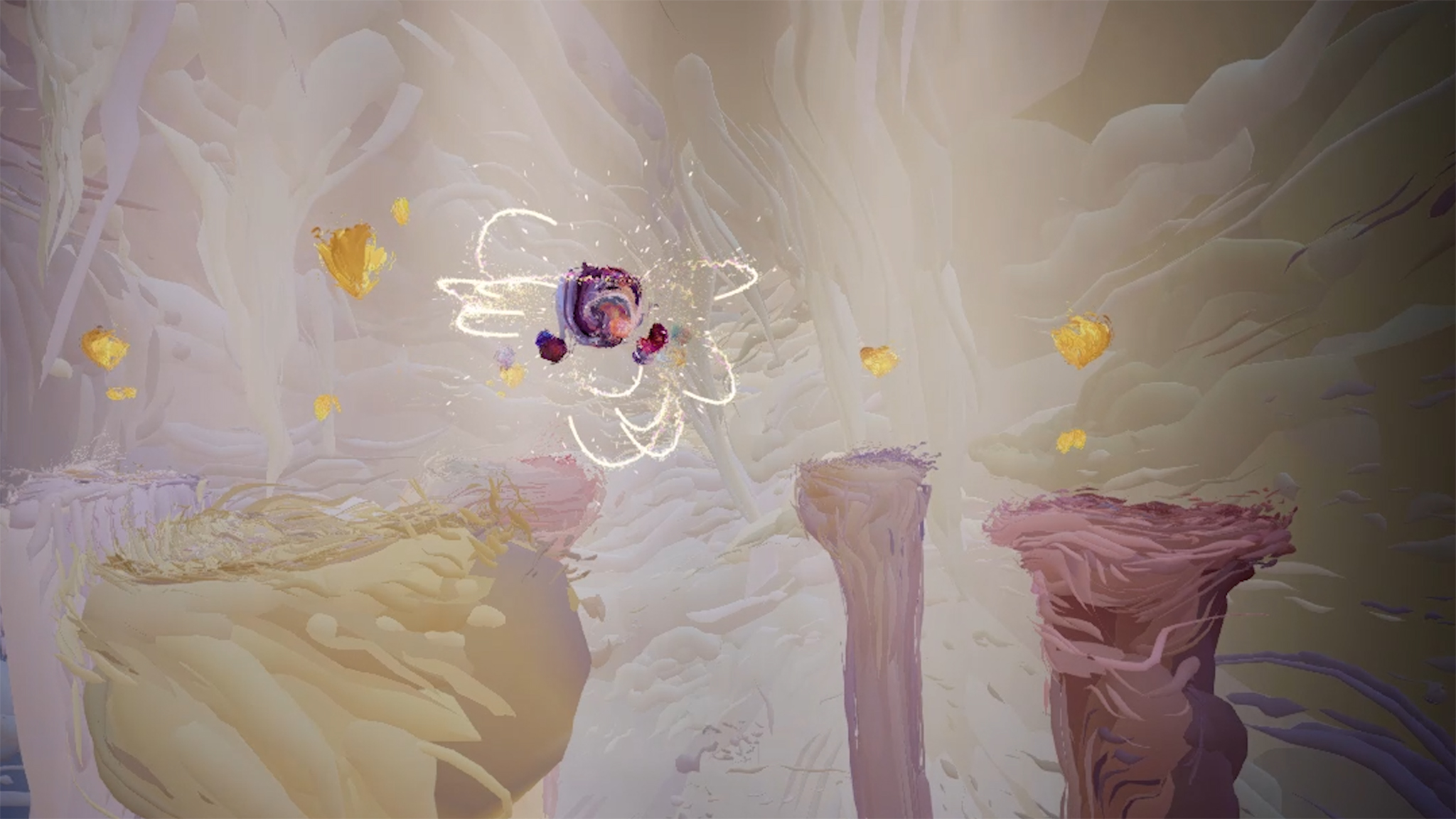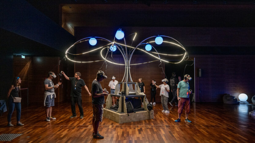 Welkom in de kleurrijke, zachte wereld van stemgeluiden. In deze multiplayer VR-ervaring breng je samen met andere spelers de concepten van communicatie en saamhorigheid terug naar tijdloze klanken, trillingen, melodieën en ritmes. Door de zwevende vormen om je heen aan te raken met je handen, dirigeer je als ensemble een betekenisvol geheel. Een verkenning van aandachtig luisteren, communicatie en creativiteit, waarin je samen een connectie smeedt zonder dat taal daaraan te pas komt.
