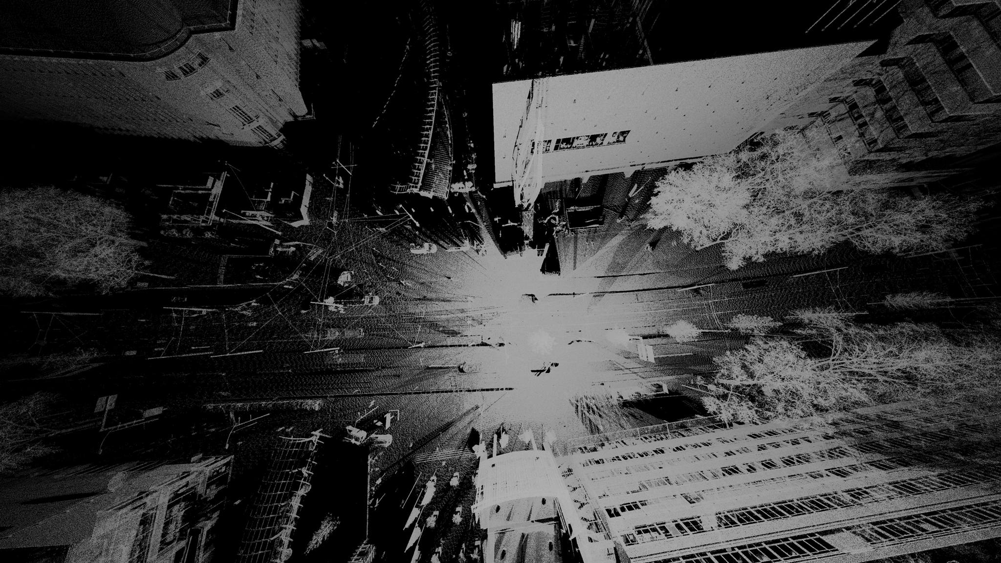 monochroom vliegen we dwars door de stad en horen we verhalen over deze groene