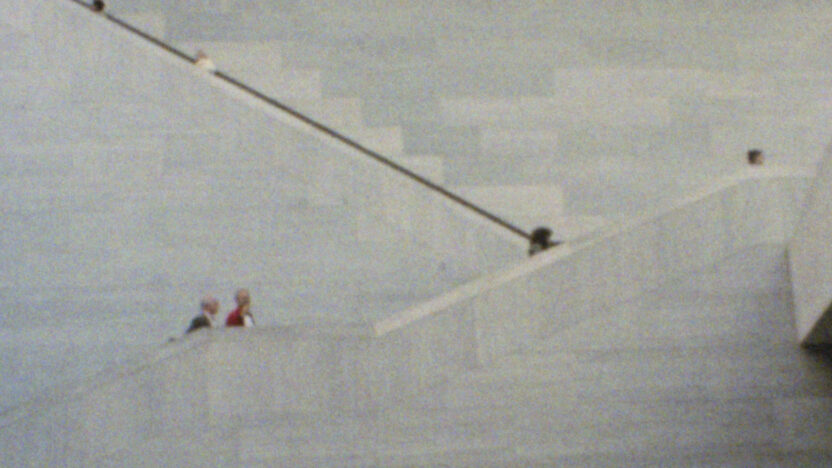 Twee mannen naderen een stel roltrappen; ze stappen ieder op een andere roltrap en creëren zo een griezelig spiegeleffect. Dit laatste shot van USSA vat de film goed samen, waarin beelden en talen van de USSR, de VS en elders naast elkaar worden gezet om niet de verschillen maar juist de overeenkomsten te benadrukken. Militaire rituelen, identieke straatobjecten of architectonische gevels die zich in een opeenvolgende serie vermenigvuldigen, de zombieachtige gebaren van de menigte burgers: ze lijken allemaal op elkaar. Met een inventieve soundtrackmontage van Marie-Catherine Miqueau.