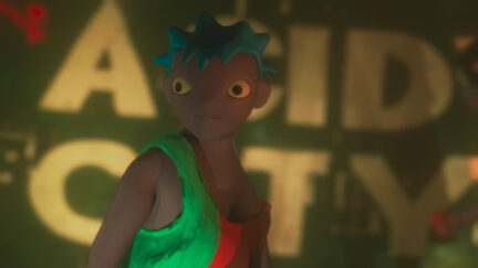 In Acid City komt een dystopische toekomst steeds dichterbij. De stad drijft in giftig water en is aan haar lot overgelaten, maar creëert onder de brandende zon een eigen sociale structuur. Met geluidsopnames vanaf de straten van New York biedt deze animatie iets zeldzaams in een tijd van klimaatdreiging: hoop.