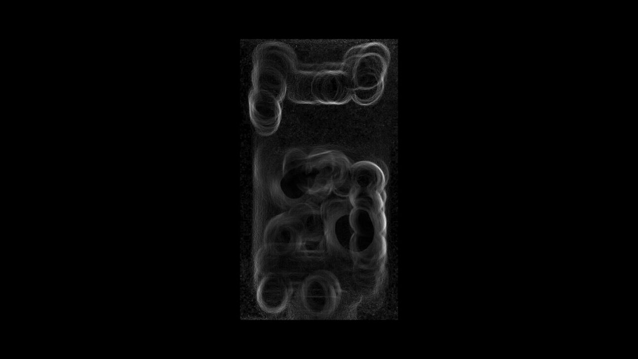 De ongewone beweging van een danser wordt ‘gescrubd’: getransformeerd door een stotterende manipulatie van beeld en geluid. -