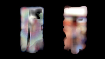 Oude, verslechterde videobeelden worden handmatig gemanipuleerd, waardoor wonderen van vervorming en abstractie zichtbaar worden. -