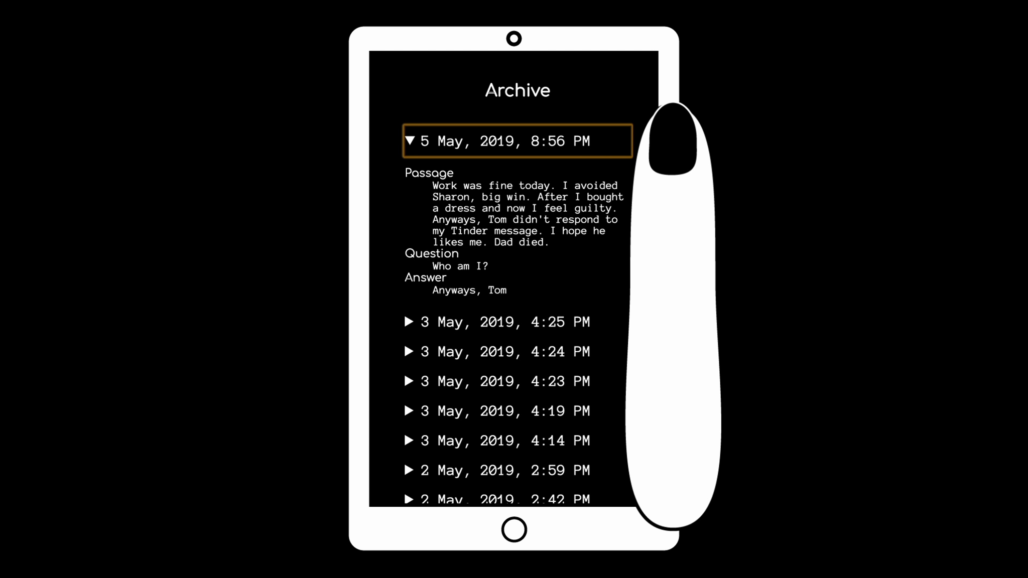 deardiary beantwoordt gelijk al je vragen. Voer je diepste gedachten in op het dagboekscherm: angsten, oordelen, toekomstverwachtingen. (Vtape) -