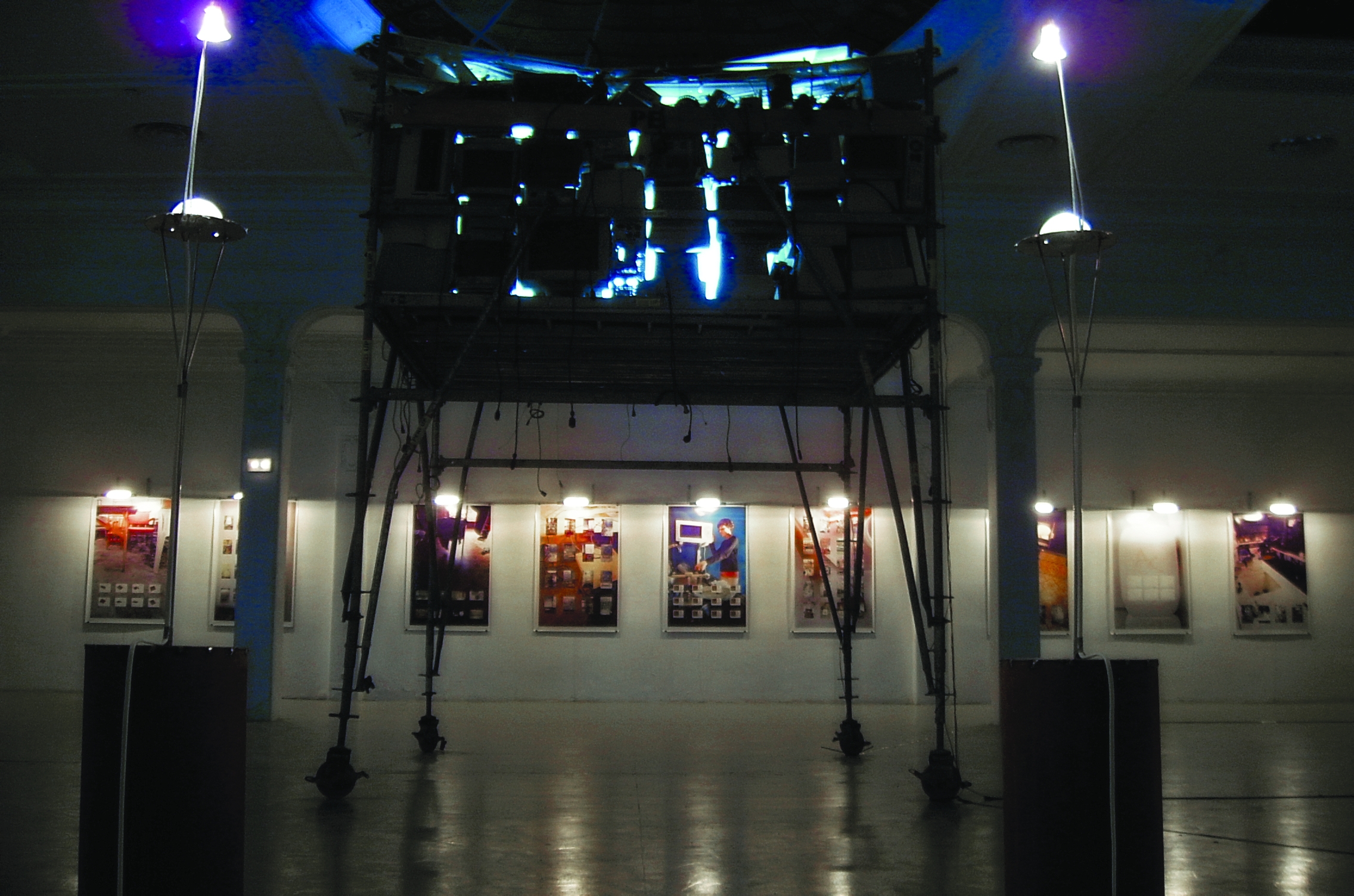 Installatie van restjes wetenschappelijke processen met geluid dat uit de tentoonstelling zelf voortkomt en zichzelf mixt gedurende de show.